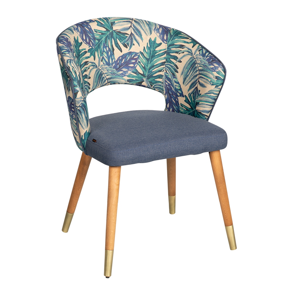 Die elegante Aussparung im unteren Rückenbereich verleiht dem Design Leichtigkeit und macht den Stuhl zu einem optischen Highlight. Das stabile Holzgestell mit Metallkappen an den Stuhlbeinen rundet das edle Erscheinungsbild ab. Erhältlich ist er in den Holzfarben Natural-Maşa, Light Walnut (helles Nussbaum) und Walnut (dunkles Nussbaum).