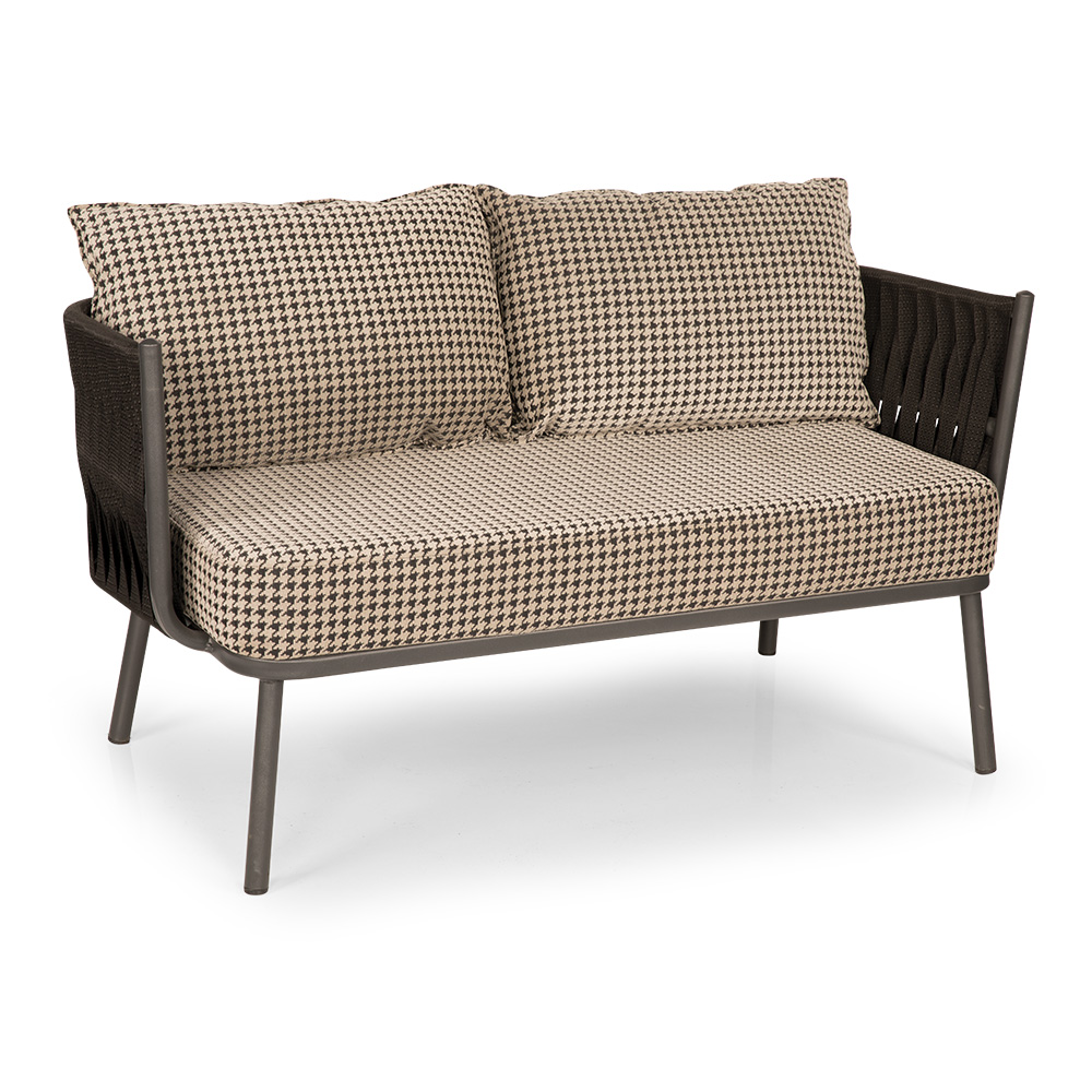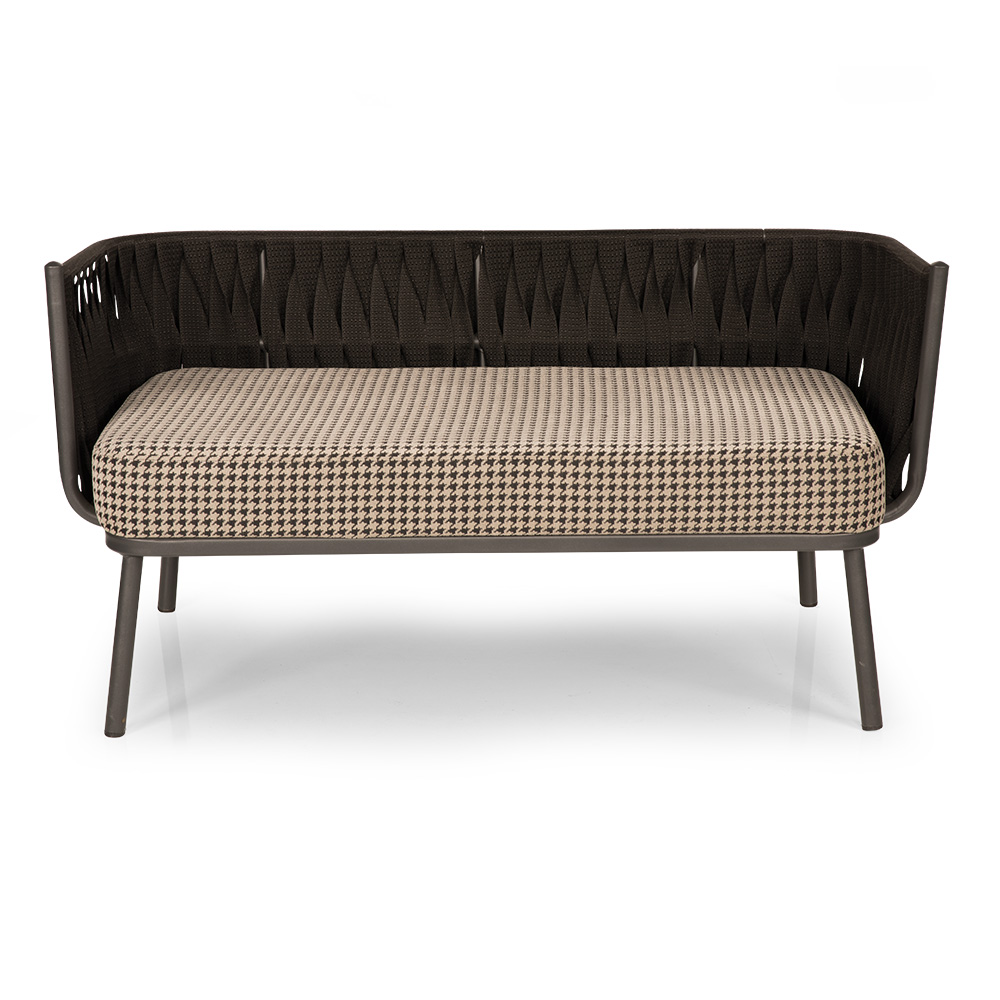 Dieses Zweisitzer-Sofa überzeugt mit einer stilvollen Kombination aus modernem Flecht-Design und höchstem Sitzkomfort. Die Arm- und Rückenlehnen sind kunstvoll mit breiten Bändern gearbeitet, was dem Möbelstück eine elegante Struktur und zugleich Stabilität verleiht. Die großzügige Sitzfläche ist mit einer dicken Polsterung ausgestattet, während zwei große Rückenkissen für Gemütlichkeit und entspanntes Anlehnen sorgen. Dank der robusten Konstruktion und wetterfesten Materialien eignet sich dieses Sofa ideal für Innen- und Außenbereiche. Es schafft eine wohnliche Atmosphäre und ist die perfekte Wahl für Lounge- oder Terrassenbereiche.