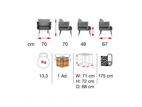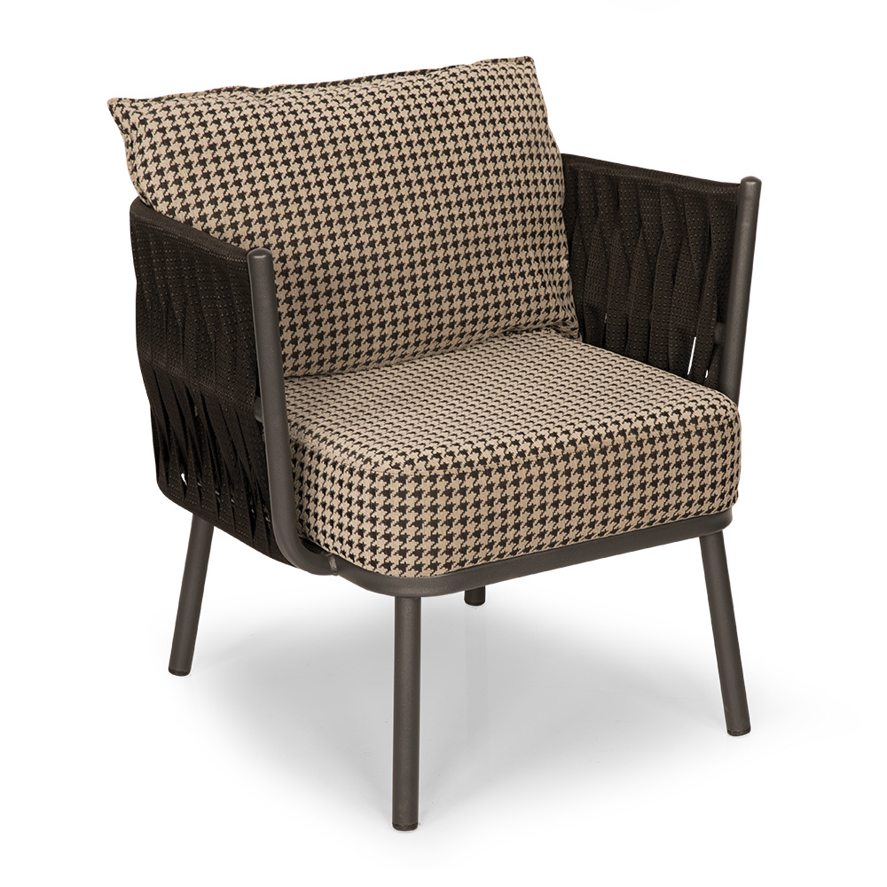 Dieser Sessel vereint großzügigen Sitzkomfort mit einem modernen Flecht-Design. Die seitlichen und hinteren Lehnen sind mit einer aufwendig gearbeiteten Flechtstruktur versehen, die dem Möbelstück eine elegante Leichtigkeit verleiht. Ein dick gepolstertes Sitzkissen sorgt für Bequemlichkeit, während das große Rückenkissen in Kontrastfarbe zusätzlichen Komfort und einen stilvollen Akzent bietet. Durch seine stabile Bauweise und die wetterbeständigen Materialien eignet sich dieser Sessel ideal für Lounges, Terrassen oder Wintergärten. Er schafft eine gemütliche Atmosphäre und lädt zum entspannten Verweilen ein.