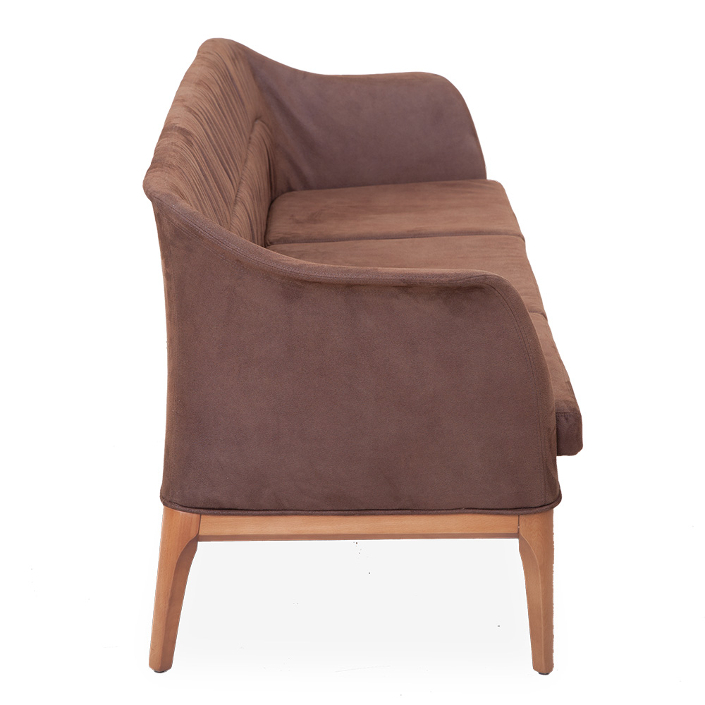 Der Bezug besteht aus hochwertigem Polyurethan, das sich durch Strapazierfähigkeit und leichte Pflege auszeichnet. Dank der klaren Linienführung und der schlanken Beine wirkt das Sofa trotz seiner Größe luftig und elegant. Das stabile Holzgestell ist in vier verschiedenen Oberflächen erhältlich: Natur, heller Nussbaum, mittlerer Nussbaum und dunkler Nussbaum.