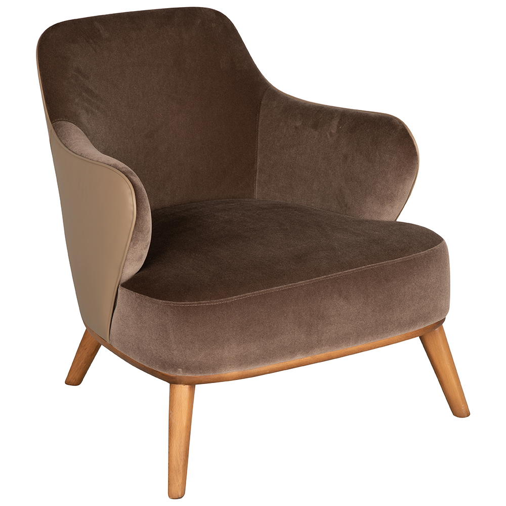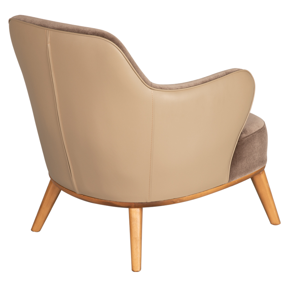 Dieser elegante Sessel verbindet zeitlose Formgebung mit modernem Komfort. Die großzügig gepolsterte Sitzfläche und die sanft geschwungenen Armlehnen schaffen eine einladende Atmosphäre und laden zum entspannten Verweilen ein. Der Bezug aus hochwertigem Stoff und Kunstleder sorgt für eine ansprechende Optik sowie eine angenehme Haptik, während die stabilen Massivholzbeine in verschiedenen Holzfarben wählbar sind und dem Möbelstück eine warme, natürliche Ausstrahlung verleihen. Dank der harmonischen Kombination aus klassischem Design und langlebiger Verarbeitung eignet er sich ideal für stilvolle Wohnräume, Hotellobbys oder gemütliche Lounge-Bereiche. Ein vielseitiges Möbelstück, das Komfort und Ästhetik perfekt vereint.