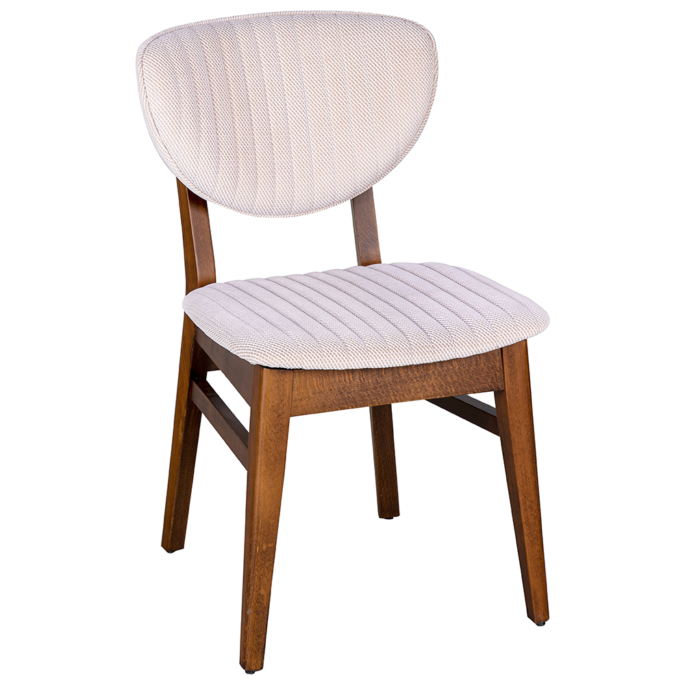 Dieser Stuhl vereint klassische Schlichtheit mit zeitloser Eleganz und eignet sich dadurch ideal für vielseitige Einsatzbereiche. Die gepolsterte Sitz- und Rückenfläche mit feiner Steppung bietet angenehmen Komfort, während das robuste Holzgestell Stabilität und Langlebigkeit gewährleistet. Durch die kompakten Maße und die klare Formgebung lässt sich der Stuhl flexibel kombinieren und harmoniert sowohl mit modernen als auch mit traditionellen Einrichtungskonzepten. Die Auswahl verschiedener Holz- und Bezugsfarben eröffnet zusätzliche Gestaltungsmöglichkeiten und macht ihn zu einer stilvollen wie funktionalen Lösung für Restaurants, Cafés oder den privaten Wohnbereich.