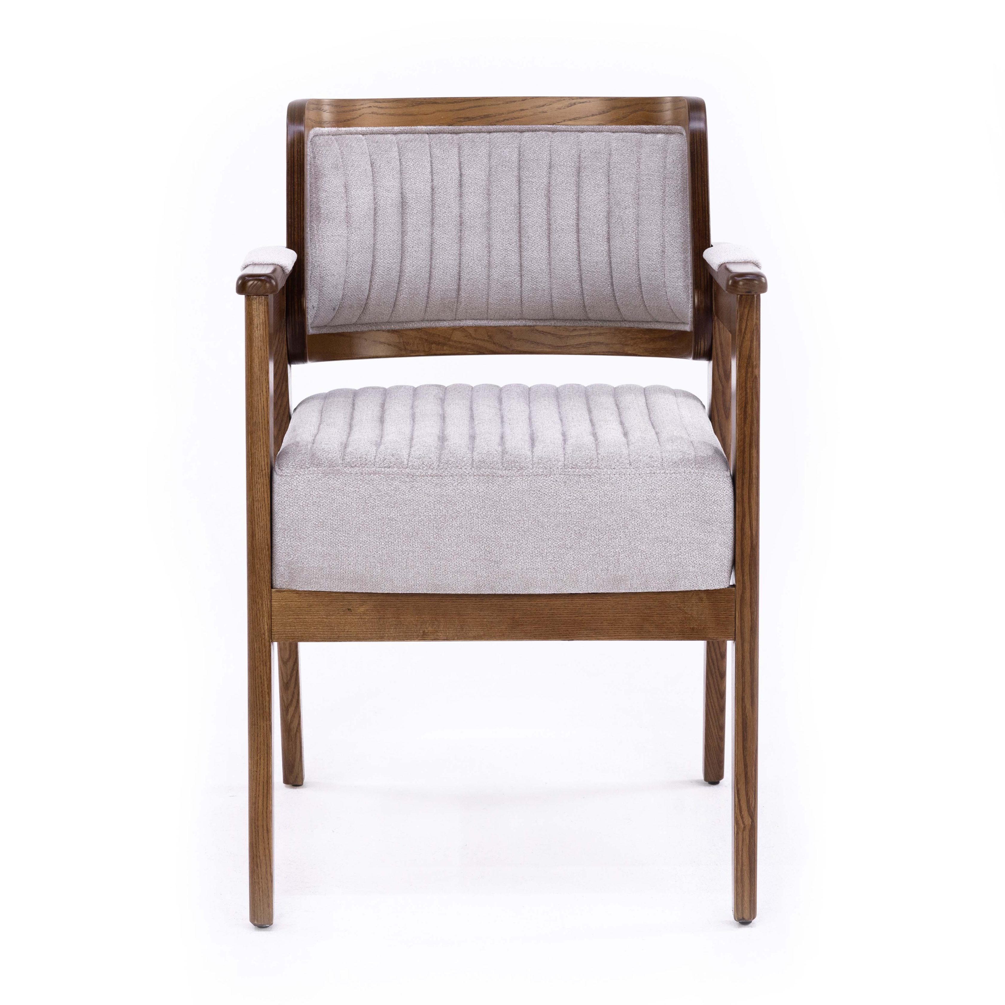 Dieser charaktervolle Armlehnstuhl kombiniert rustikale Eleganz mit hohem Sitzkomfort. Das stabile Holzgestell wird durch eine üppig gepolsterte Sitz- und Rückenfläche ergänzt, die mit markanten Ziernähten und einer feinen Steppung veredelt ist. Die bezogenen Armlehnen unterstreichen die Wertigkeit und sorgen für zusätzlichen Komfort, während die natürlichen Holzoberflächen Wärme und Beständigkeit ausstrahlen. Durch seine robuste Verarbeitung eignet sich der Stuhl ideal für den Einsatz in Restaurants, Bars oder stilvollen Wohnbereichen, wo er sowohl durch Langlebigkeit als auch durch seine ausdrucksstarke Optik überzeugt. Ein Möbelstück, das Funktionalität, Stabilität und zeitloses Design wirkungsvoll vereint.