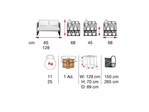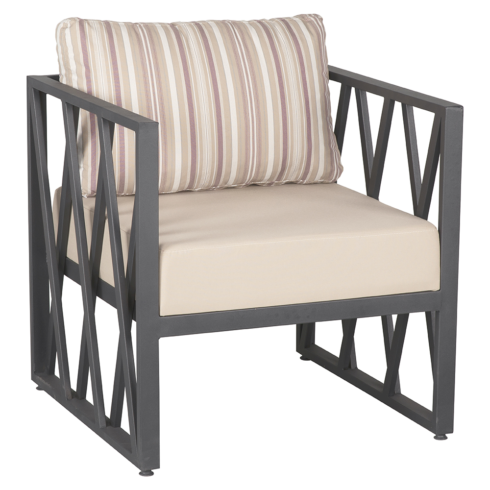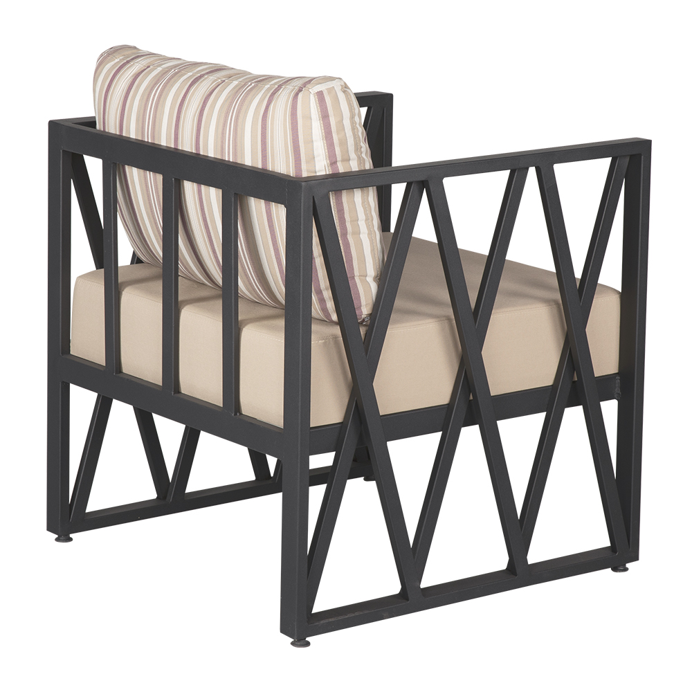 Dieser Sessel überzeugt durch sein modernes Design und die klare Formensprache. Das markante Metallgestell mit den diagonal verlaufenden Verstrebungen sorgt nicht nur für Stabilität, sondern verleiht dem Möbelstück auch einen architektonischen Charakter. Die Sitz- und Rückenkissen sind angenehm dick gepolstert und bieten hohen Sitzkomfort, egal ob für kurze Pausen oder längeres Verweilen. Dank der strapazierfähigen und pflegeleichten Bezüge lässt sich der Sessel unkompliziert in den Alltag integrieren und ist sowohl für den Innen- als auch für den überdachten Außenbereich geeignet. Mit seinem ausgewogenen Verhältnis aus Robustheit, Komfort und stilvoller Optik fügt er sich harmonisch in moderne Wohnkonzepte ein und setzt zugleich einen individuellen Akzent.