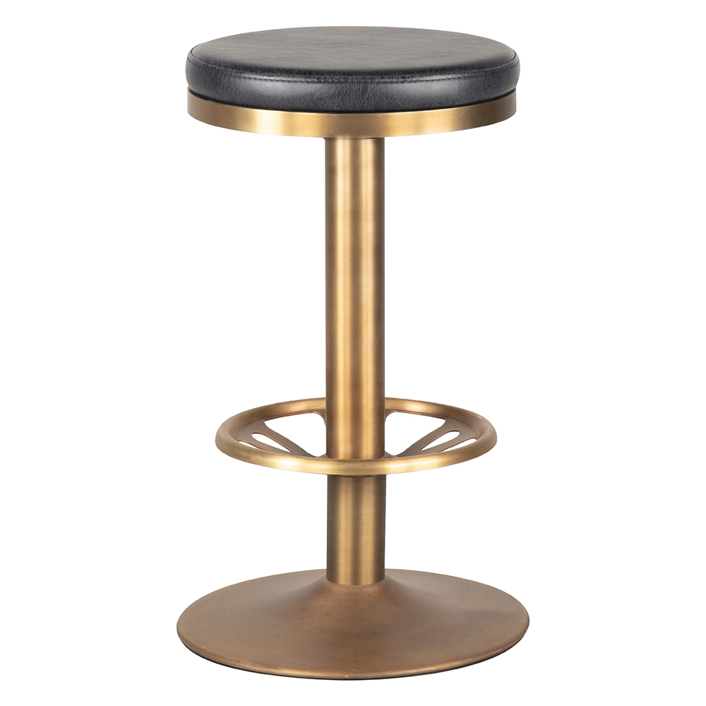Dieser Barhocker überzeugt durch seine schlichte Eleganz und robuste Verarbeitung. Die runde Sitzfläche ist weich gepolstert und mit einem hochwertigen Bezug versehen, der Komfort und Langlebigkeit vereint. Das stabile Metallgestell in edler Messingoptik sorgt für sicheren Stand und verleiht dem Hocker eine stilvolle Ausstrahlung. Eine integrierte Fußstütze erhöht den Sitzkomfort und macht ihn auch für längere Aufenthalte an der Bar angenehm. Dank seines klaren Designs passt der Hocker perfekt in moderne Bars, Lounges oder gastronomische Einrichtungen und fügt jedem Ambiente eine elegante Note hinzu. Ein funktionales Möbelstück, das mit zeitloser Schlichtheit überzeugt.