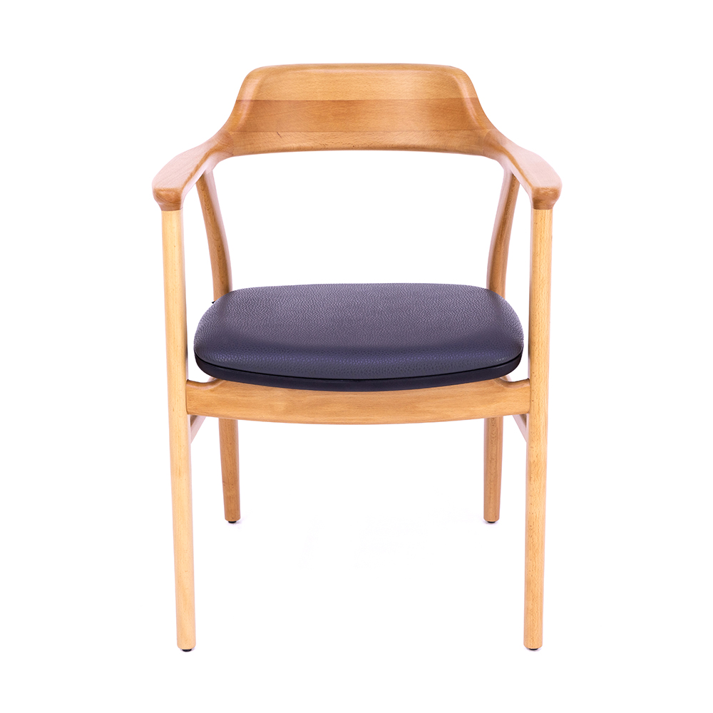 Dieser Stuhl vereint minimalistisches Design mit funktionaler Stabilität. Die klaren Linien und die sanft geschwungene Rückenlehne sorgen für zeitlose Eleganz, während die Armlehnen zusätzlichen Komfort bieten. Durch die gepolsterte Sitzfläche entsteht ein angenehmes Sitzerlebnis, das sich ideal für längere Aufenthalte eignet. Mit seiner robusten Holzstruktur und den wählbaren Holzfarben fügt sich der Stuhl flexibel in unterschiedliche Raumkonzepte ein – von modernen Gastronomien bis hin zu stilvollen Wohnbereichen.