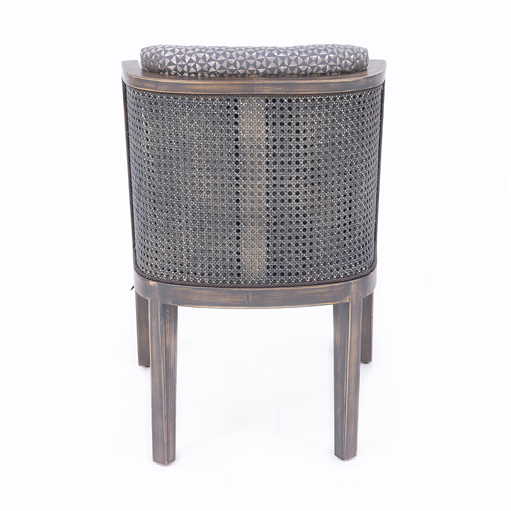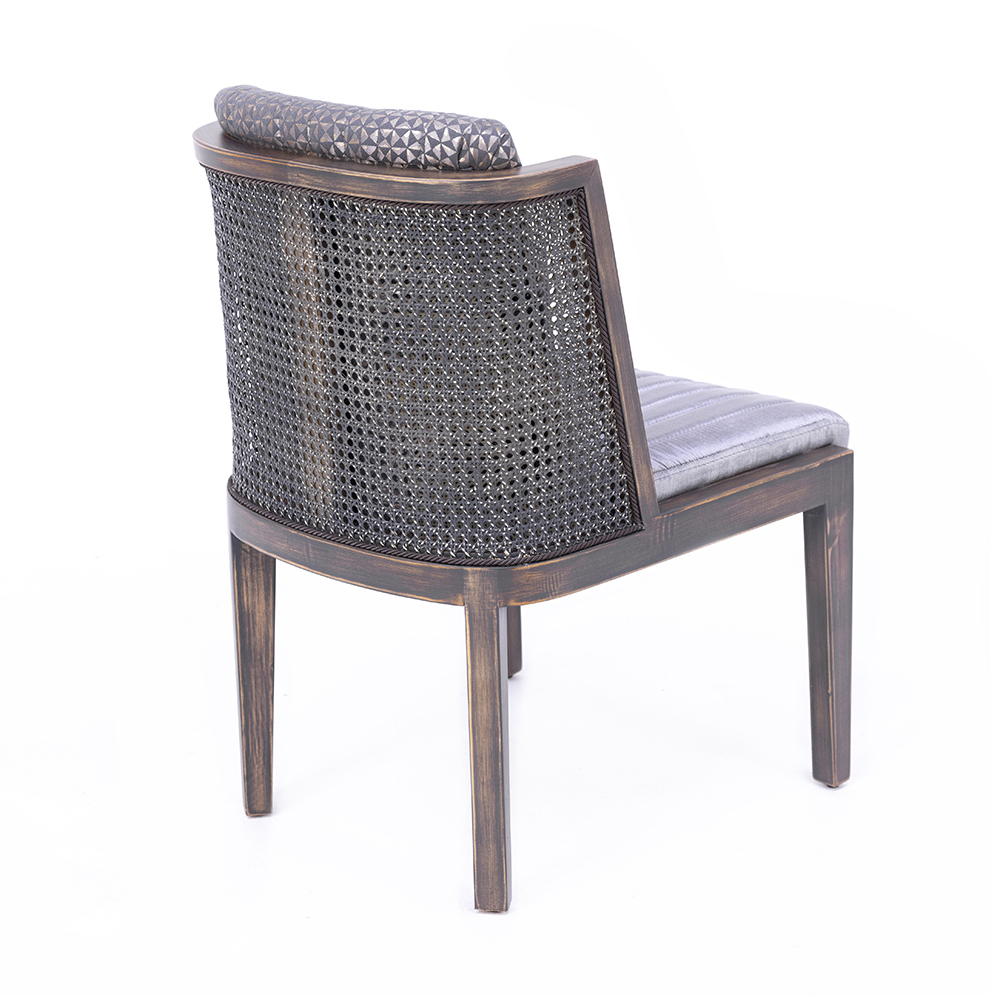 Dieser Stuhl überzeugt durch sein elegantes Design, das eine gelungene Kombination aus geflochtener Rückenlehne und gepolstertem Sitzkissen darstellt. Das stabile Holzgestell ist in verschiedenen Farbtönen wie Natur-Eiche, heller Nussbaum oder dunkler Nussbaum erhältlich und sorgt für eine harmonische Anpassung an unterschiedliche Einrichtungsstile. Die gepolsterte Sitzfläche garantiert hohen Komfort, während die geflochtene Struktur der Rückenlehne für eine luftige Leichtigkeit sorgt. Ob im Esszimmer, im Wintergarten oder in stilvollen Gastronomiebereichen – dieser Stuhl bringt Natürlichkeit, Eleganz und Bequemlichkeit in Einklang.