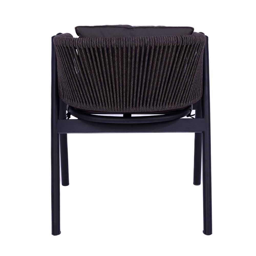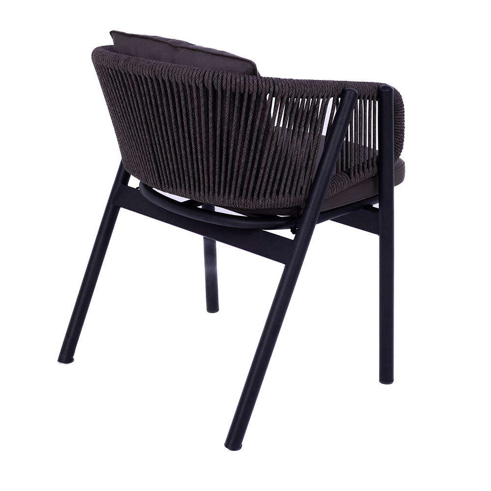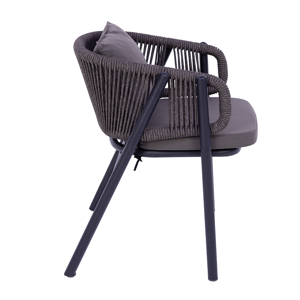 Dieser moderne Stuhl aus Aluminium kombiniert Stabilität mit Leichtigkeit und ist ideal für den Einsatz im Innen- und Außenbereich. Die Seitenteile sind mit robusten, kunstvoll verflochtenen Seilen versehen, die dem Design eine stilvolle Note verleihen und gleichzeitig für bequeme Armlehnen sorgen. Weiche Sitz- und Rückenkissen bieten hohen Komfort und sind leicht abnehmbar. Mit einem Gewicht von unter zehn Kilogramm lässt sich der Stuhl flexibel platzieren und unkompliziert bewegen. Zum Preis von zweihundertachtzig Euro ist er eine langlebige und zugleich ästhetische Wahl für Garten, Terrasse oder auch moderne Wohnräume. Seine wetterbeständigen Materialien machen ihn besonders pflegeleicht.