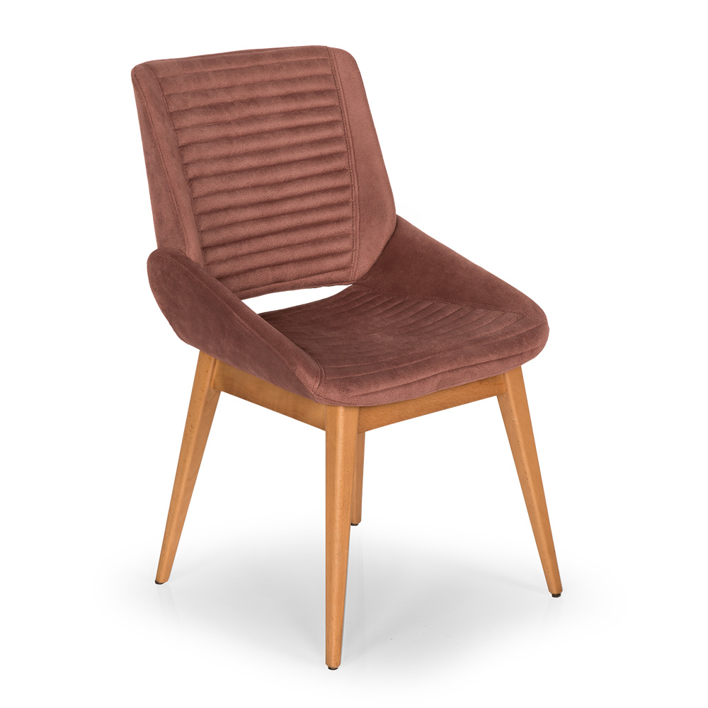 Die Polsterung mit Polyurethan-Bezug bietet hohen Sitzkomfort und ist pflegeleicht. Das stabile Holzgestell in den Ausführungen Natural-Maşa, Light Walnut (helles Nussbaum) und Walnut (dunkles Nussbaum) verleiht dem Stuhl eine warme, natürliche Note.