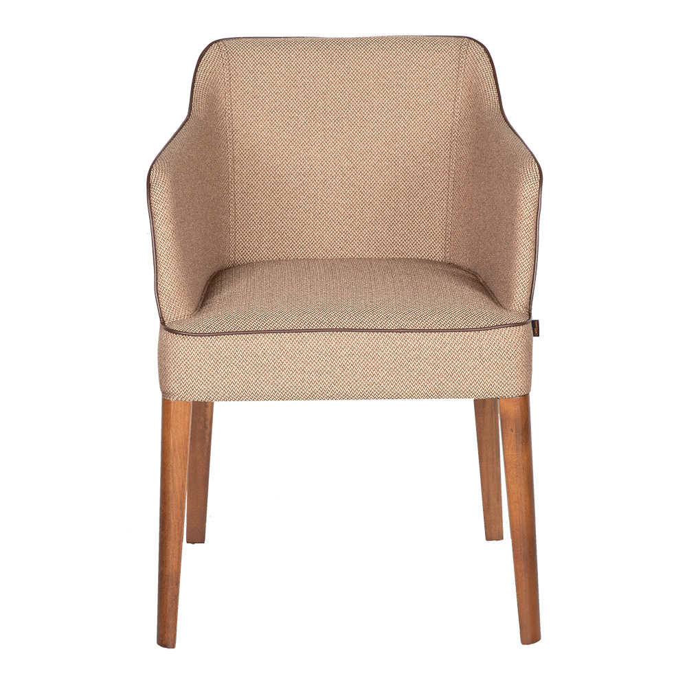 Dieser elegante Armlehnstuhl mit feiner Kedernaht vereint Komfort und modernes Design. Die gepolsterte Sitz- und Rückenfläche sorgt für ein angenehmes Sitzerlebnis, während die Armlehnen zusätzlichen Halt bieten. Die schlichte Formgebung in Verbindung mit hochwertigen Holzbeinen macht den Stuhl zu einem stilvollen Begleiter für Essbereiche, Besprechungsräume oder Loungebereiche.