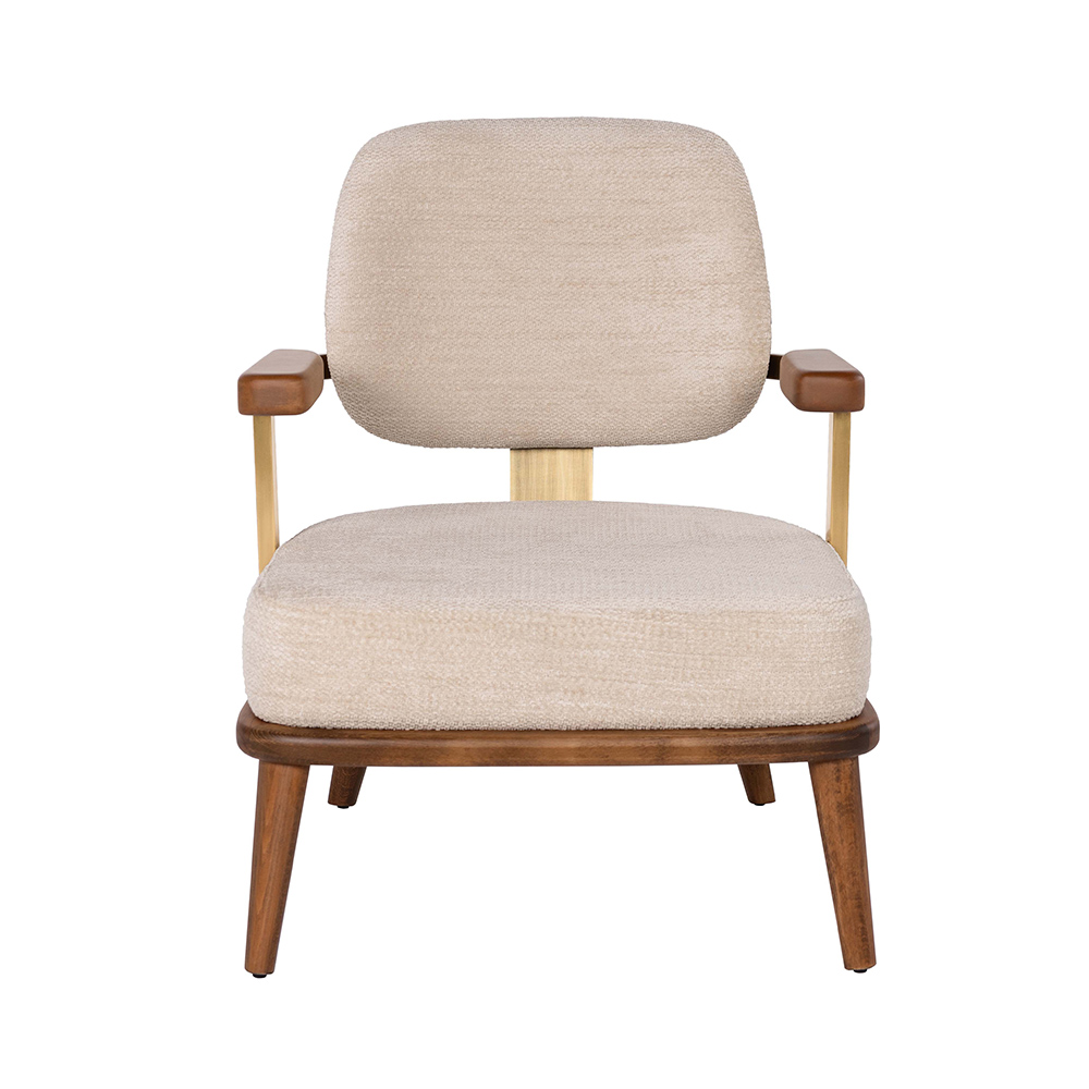 Dieser Lounge-Sessel verbindet zeitgemäßes Design mit einem Hauch von Retro-Charme. Das Zusammenspiel von massivem Holz, gepolstertem Sitz und Rückenlehne sowie stilvollen Armlehnen sorgt für hohen Komfort und eine warme Ausstrahlung. Durch die markante Rückenpartie und die seitlichen Holzdetails wirkt der Sessel besonders edel und charaktervoll. Mit seiner robusten Bauweise eignet er sich hervorragend für den Wohnbereich, Hotellobbys oder stilvolle Gastronomieräume. Unterschiedliche Holzvarianten und Bezüge ermöglichen eine flexible Anpassung an verschiedene Einrichtungsstile, wodurch er zu einem echten Blickfang in jedem Raum wird.