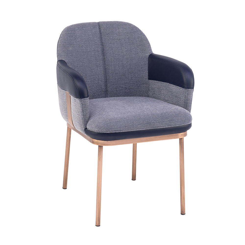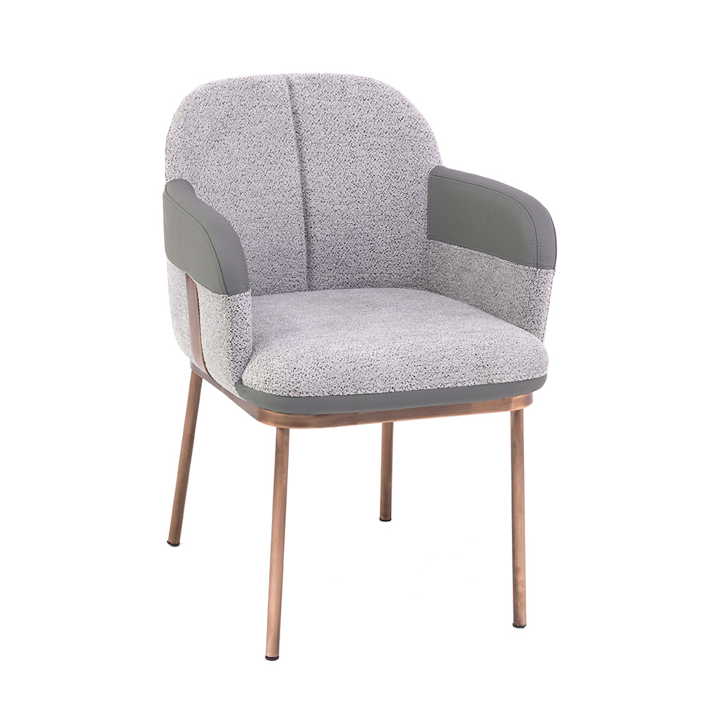Dieser Stuhl überzeugt durch seine einladende Form und die gelungene Kombination aus Gemütlichkeit und Eleganz. Die weich gepolsterte Sitzfläche sowie die komfortablen Armlehnen sorgen für ein angenehmes Sitzgefühl, während die modernen Metallbeine Stabilität und einen leichten Charakter verleihen. Besonders hervorzuheben ist die zweifarbige Gestaltung mit dezenten Kontrasten, die dem Modell einen eleganten Akzent verleiht. Ob im Essbereich, im Lounge-Bereich oder als stilvoller Einzelstuhl – dieses Modell fügt sich harmonisch in unterschiedliche Raumkonzepte ein und verbindet Komfort mit modernem Design.