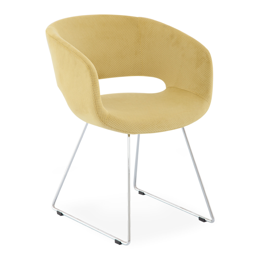 Die sanft geschwungene Form und das moderne Design verleihen diesem Stuhl eine elegante Leichtigkeit. Die gepolsterte Sitzfläche sowie die umlaufende Rückenlehne sorgen für angenehmen Komfort und laden zum entspannten Sitzen ein. Mit seinem filigranen Metallgestell eignet er sich ideal für Essbereiche, Besprechungsräume oder moderne Lounges. Seine vielseitige Gestaltung macht ihn zu einer zeitlosen Ergänzung für unterschiedliche Einrichtungskonzepte.