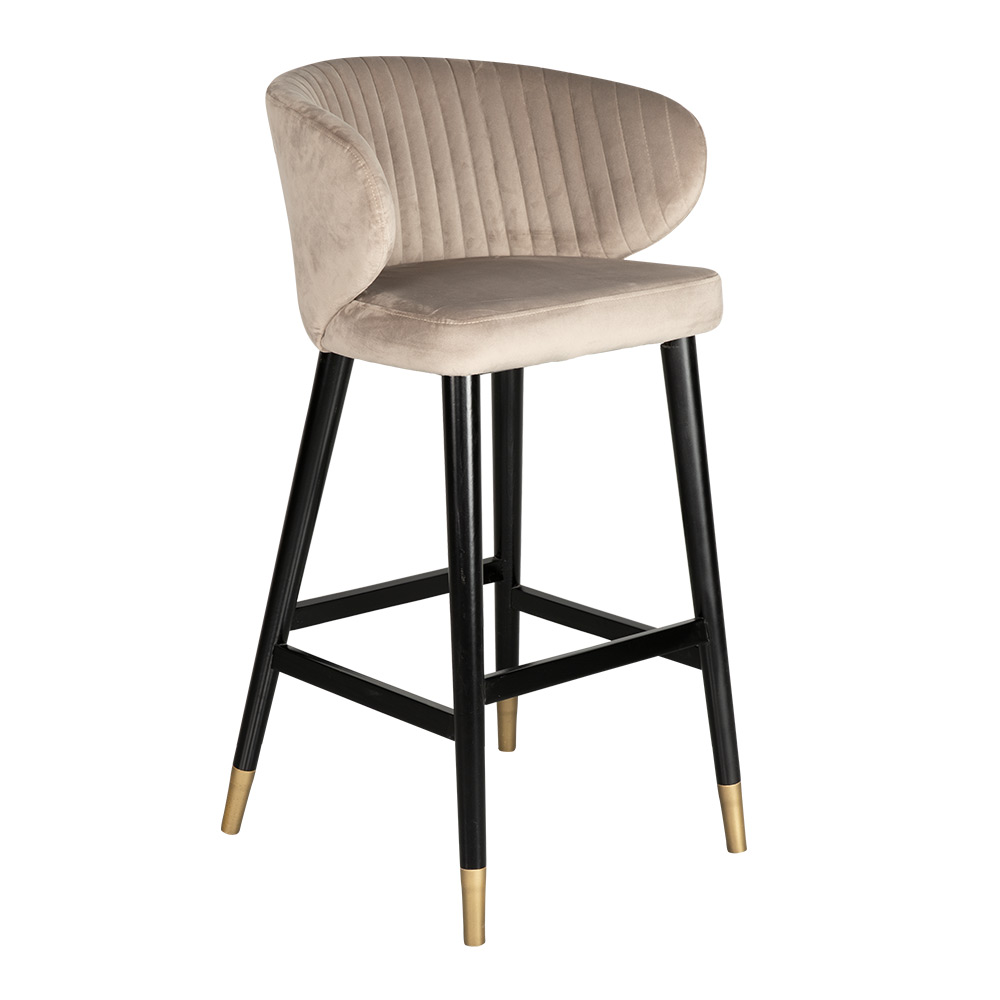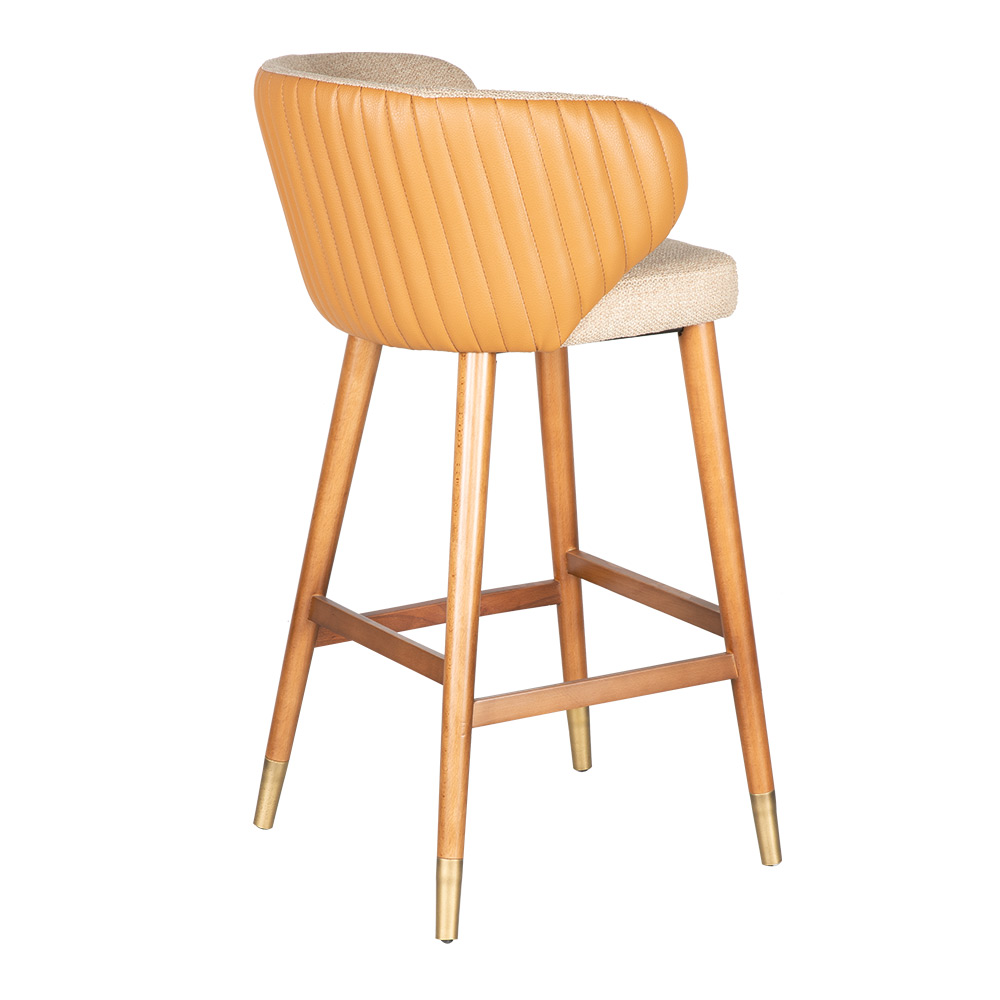 Dieser Barstuhl verbindet elegantes Design mit höchstem Sitzkomfort. Die weich gepolsterte Sitzfläche und die geschwungene Rückenlehne mit vertikaler Ziernaht sorgen nicht nur für ein edles Erscheinungsbild, sondern auch für ergonomischen Halt. Das stabile Holzgestell mit Metallakzenten an den Füßen garantiert Langlebigkeit und Standfestigkeit. Erhältlich in verschiedenen Holz- und Stoffvarianten fügt sich der Stuhl harmonisch in unterschiedliche Raumkonzepte ein. Ideal für Bars, Kücheninseln oder moderne Gastronomiebereiche setzt er stilvolle Akzente und bietet zugleich ein bequemes Sitzerlebnis.