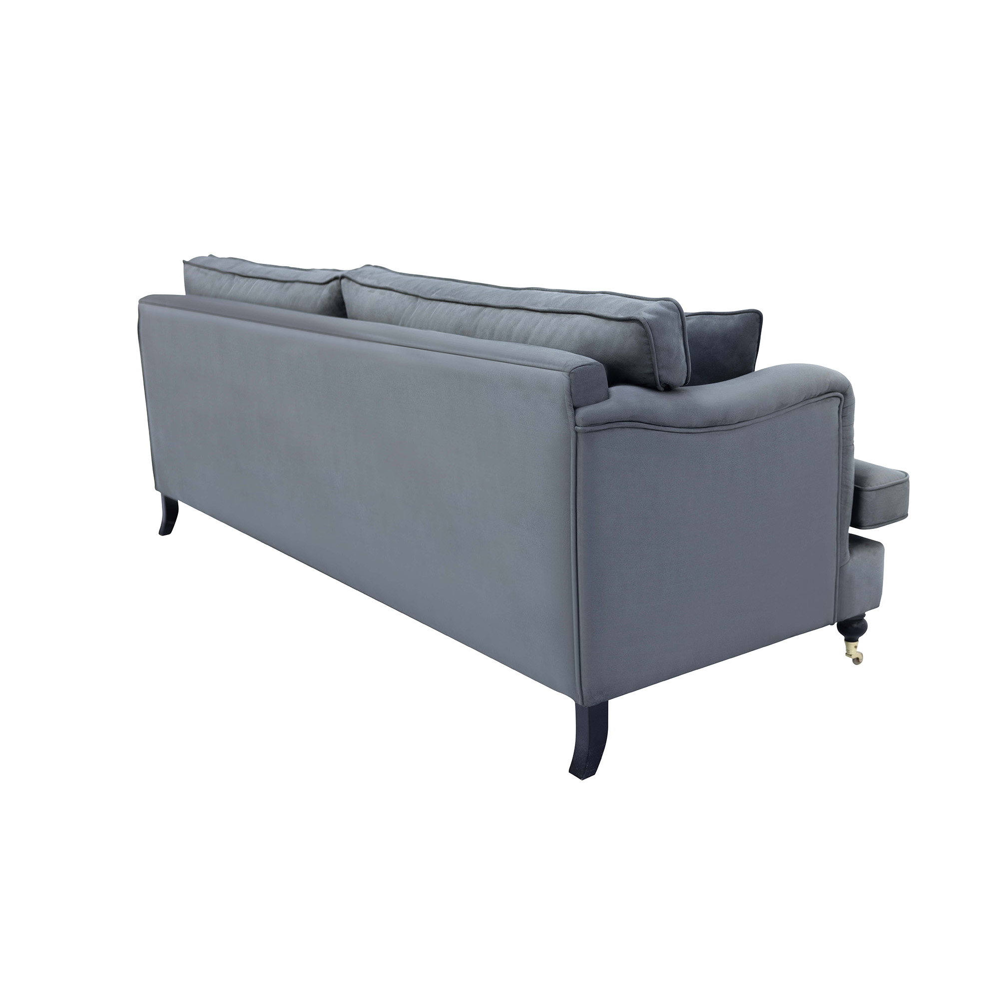 Dieses Sofa verkörpert schlichte Eleganz und modernen Komfort in perfekter Balance. Mit seiner klaren Linienführung, den dezent abgerundeten Armlehnen und den fein abgesteppten Rückenpolstern wirkt es stilvoll und zeitlos zugleich. Die großzügigen Sitzflächen mit weicher Polsterung laden zum Entspannen ein, während die hochwertigen Holzfüße mit Rollen an der Vorderseite einen praktischen und gleichzeitig raffinierten Akzent setzen. Dank seines neutralen Bezugs fügt sich das Sofa harmonisch in verschiedenste Einrichtungsstile ein – von klassisch bis modern. Ideal geeignet für Wohnräume, Hotellounges oder repräsentative Empfangsbereiche.