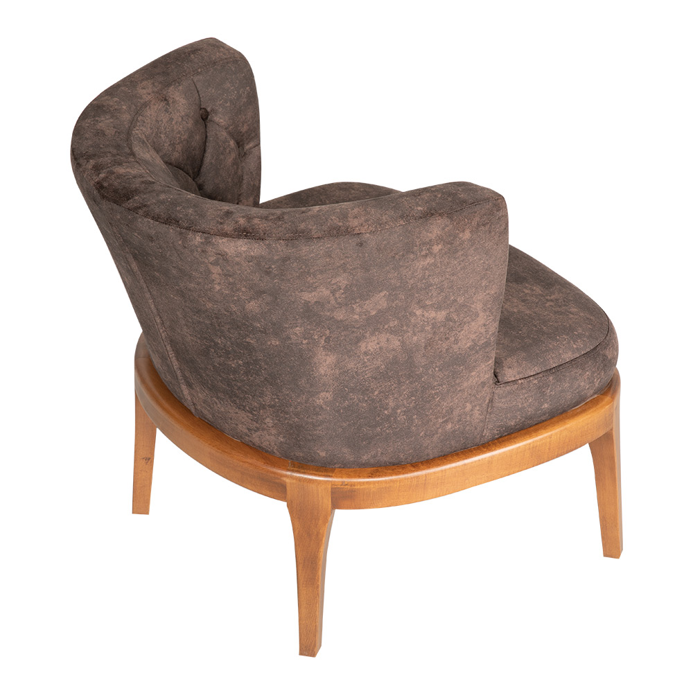 Dieser elegante Sessel verbindet klassischen Charme mit moderner Gemütlichkeit. Die markante Capitonné-Steppung in der Rückenlehne verleiht ihm einen luxuriösen Charakter, während die geschwungene Form für ein harmonisches und einladendes Erscheinungsbild sorgt. Das weich gepolsterte Sitzkissen bietet hohen Komfort, ideal für lange Gespräche oder entspannte Momente. Getragen wird der Sessel von einem stabilen Massivholzgestell, das in verschiedenen Holzfarben wie Natur-Eiche, heller Walnuss oder dunkler Walnuss erhältlich ist. Mit seiner stilvollen Ausstrahlung eignet er sich perfekt für Wohnräume, Hotellounges oder repräsentative Geschäftsräume.