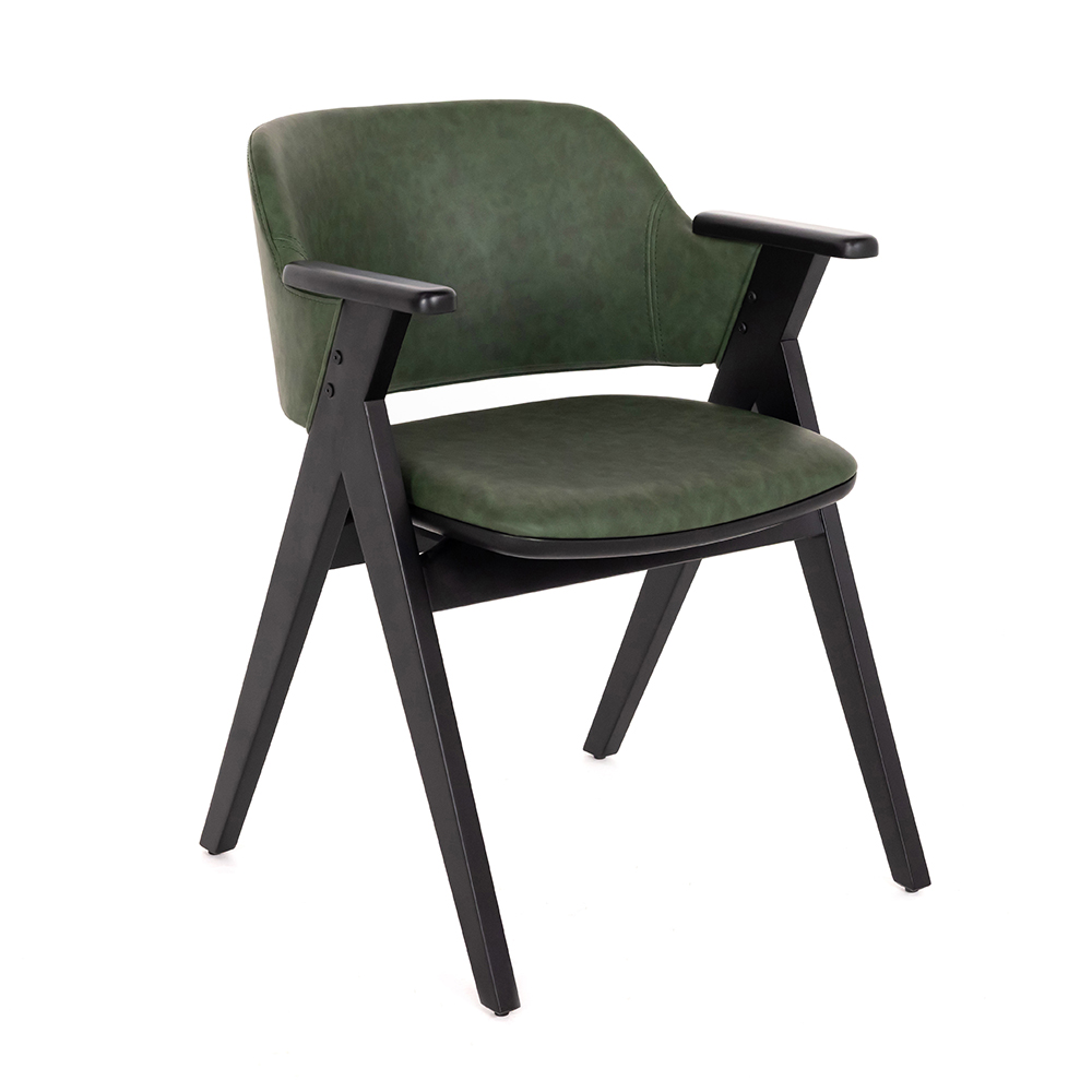 Dieser Stuhl überzeugt mit seiner klaren, leicht retro-inspirierten Formensprache und einem warmen, einladenden Charakter. Die gepolsterte Sitz- und Rückenfläche bietet angenehmen Komfort, während die stabilen Holzbeine für eine solide Standfestigkeit sorgen. Dank der Armlehnen wird zusätzliches Sitzgefühl geboten, was ihn ideal für längere Gespräche oder gemütliche Runden macht. Mit den wählbaren Holzfarben passt er sich flexibel verschiedenen Raumkonzepten an – von modernen Büros bis hin zu stilvollen Wohn- oder Gastronomiebereichen.