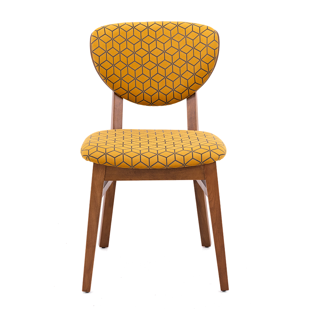 Dieser Stuhl zeichnet sich durch ein zeitloses Design und eine auffällige Polsterung mit geometrischem Muster in warmen Gelbtönen aus. Das robuste Holzgestell ist in verschiedenen Farbvarianten erhältlich – Natur, heller Nussbaum, mittlerer Nussbaum oder dunkler Nussbaum – und verleiht ihm eine edle Ausstrahlung. Sitzfläche und Rückenlehne sind komfortabel gepolstert, sodass auch bei längerer Nutzung ein angenehmes Sitzgefühl entsteht. Mit einem Gewicht von nur etwa sieben Komma zwei Kilogramm ist er leicht zu handhaben und vielseitig einsetzbar. Zum Preis von einhundertzehn Euro verbindet er Funktionalität, Bequemlichkeit und dekorativen Charakter auf gelungene Weise.