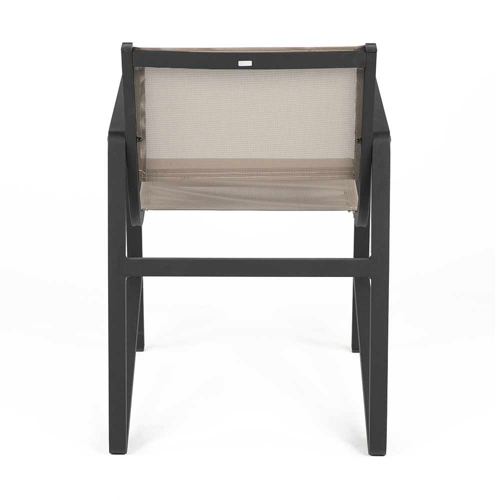 Dieser Stuhl überzeugt durch sein minimalistisches Design und die klare Linienführung. Das stabile Aluminiumgestell sorgt für eine hohe Widerstandsfähigkeit, während die bespannte Sitz- und Rückenfläche angenehm leicht und pflegeleicht ist. Dank seines geringen Gewichts lässt er sich mühelos bewegen und flexibel einsetzen – sei es im Außenbereich, auf der Terrasse oder in gastronomischen Räumen. Seine schlichte Eleganz macht ihn zu einem funktionalen Allrounder, der sich harmonisch in unterschiedliche Umgebungen einfügt und dabei Komfort und Stabilität vereint.