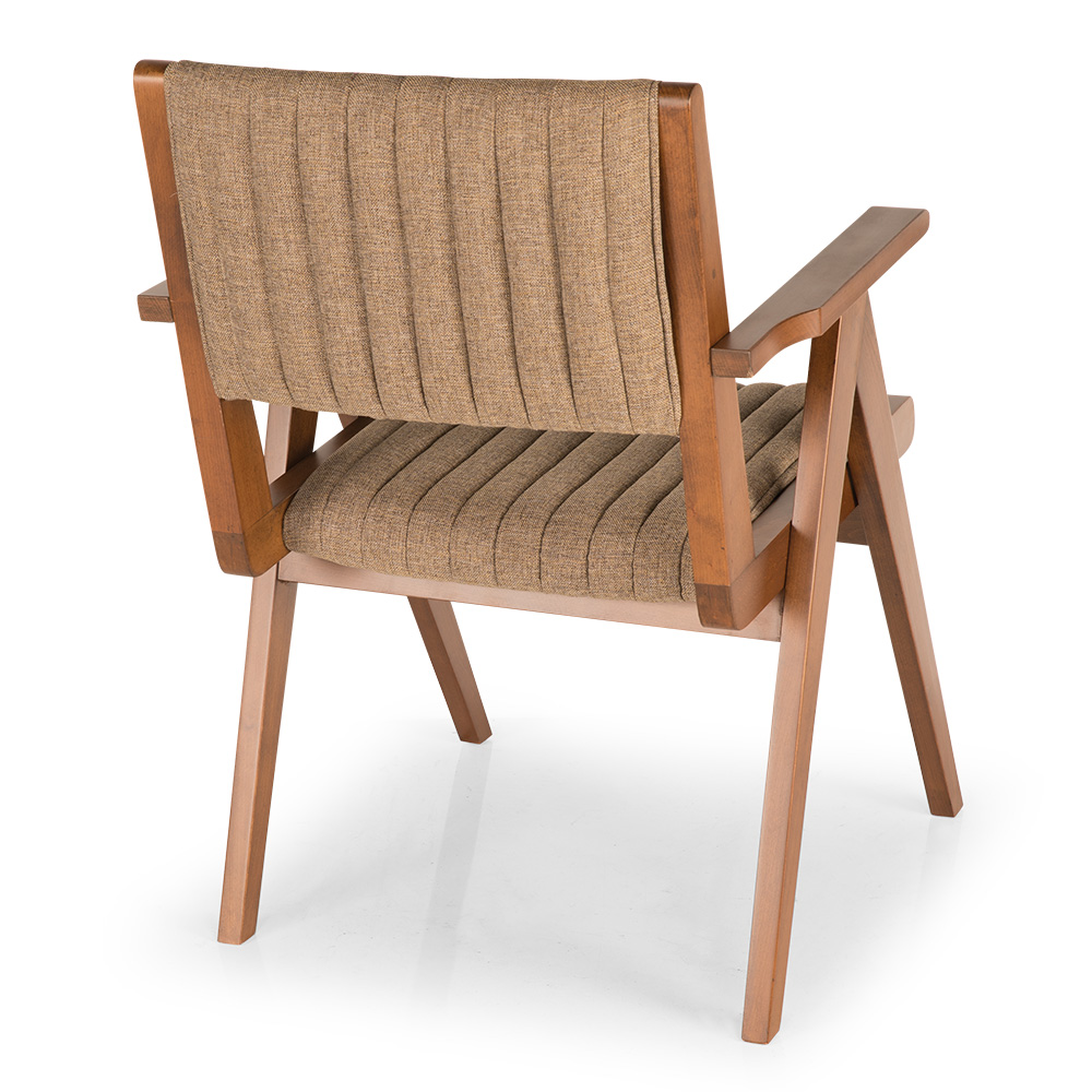 Das stabile Holzgestell verleiht dem Stuhl Standfestigkeit und ist in den Ausführungen Natural-Maşa, Light Walnut (helles Nussbaum) und Walnut (dunkles Nussbaum) erhältlich. Durch die Kombination aus edlen Holzelementen und Polsterung entsteht ein hochwertiger Gesamteindruck.