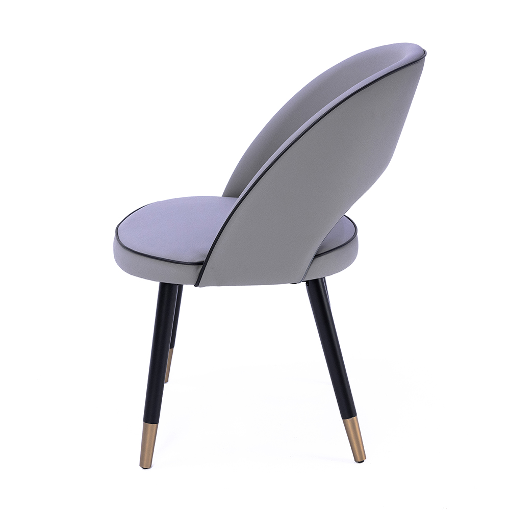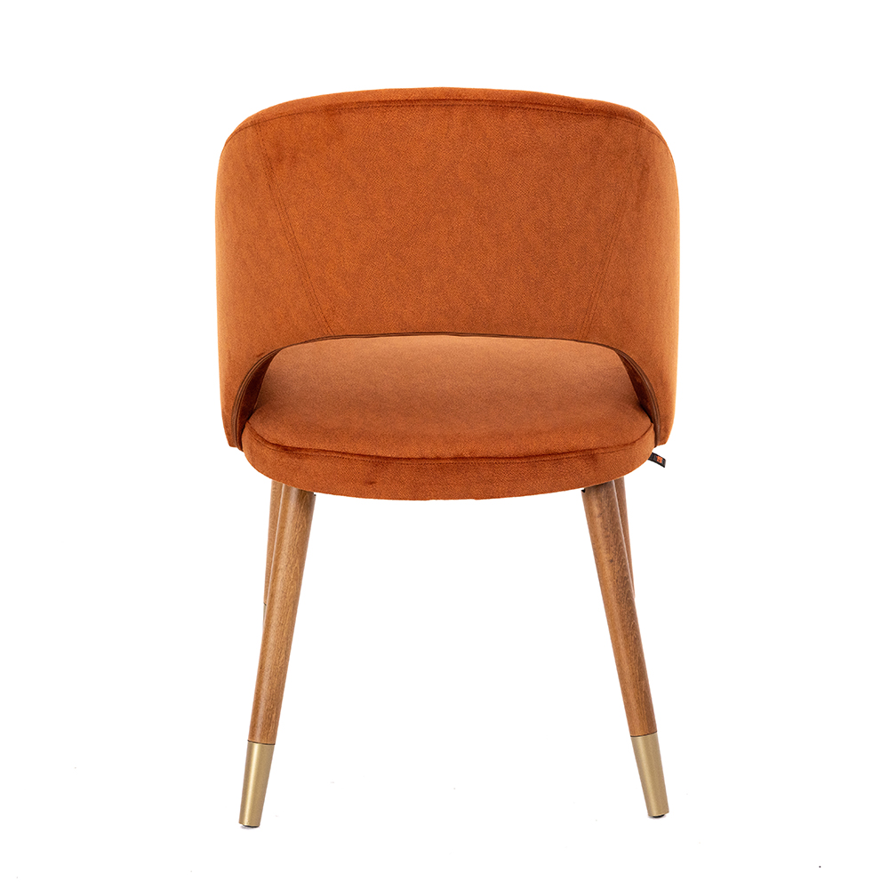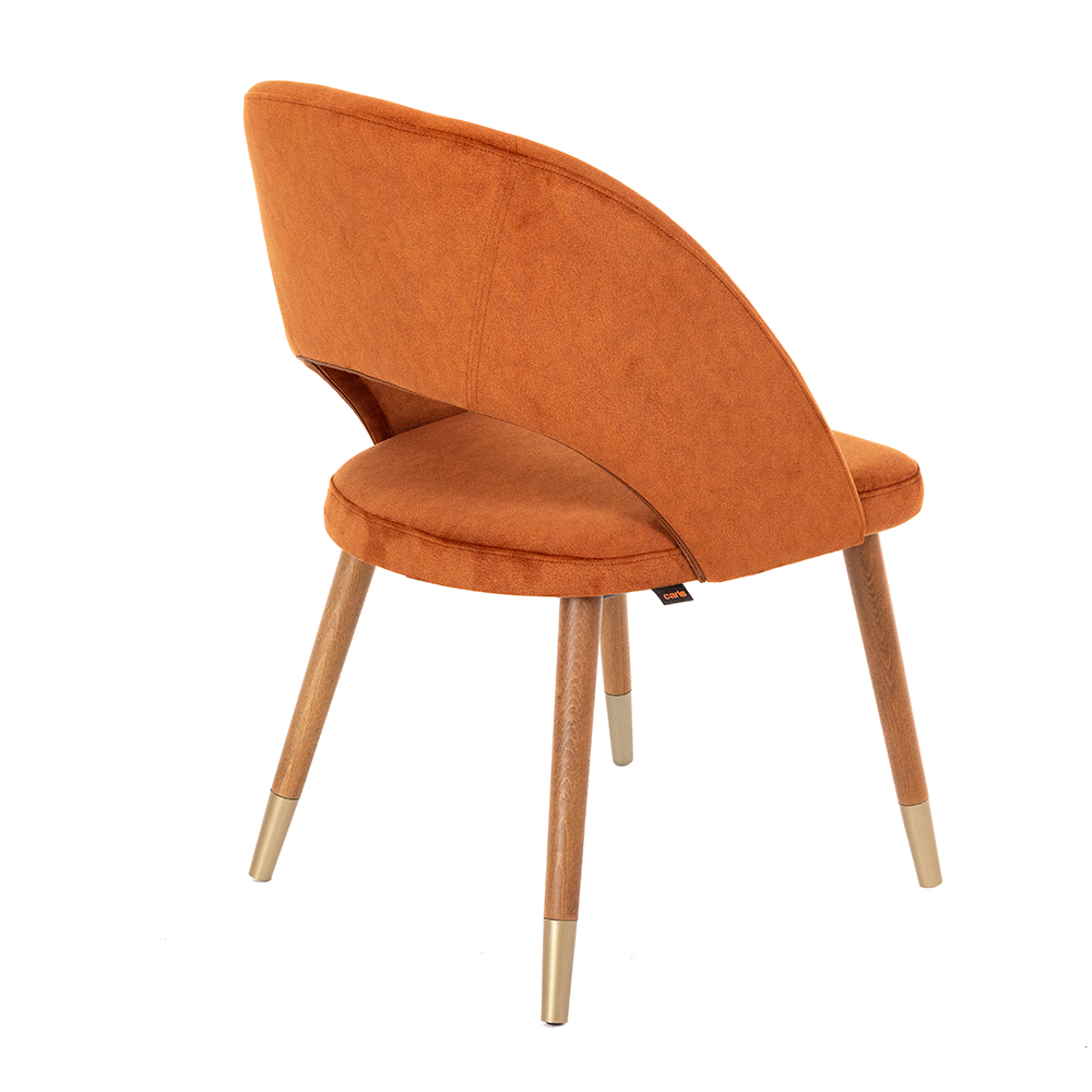 Dieser Stuhl besticht durch seine moderne Linienführung und die harmonische Kombination aus runder Rückenlehne und offenem Design. Die gepolsterte Sitzfläche sorgt für hohen Komfort, während die stabilen Holzbeine mit metallischen Akzenten einen edlen Akzent setzen. Durch die kompakte Form eignet er sich hervorragend für Restaurants, Cafés oder stilvolle Wohnräume. In verschiedenen Holzfarben erhältlich, lässt er sich flexibel an unterschiedliche Einrichtungskonzepte anpassen. Ein eleganter Allrounder, der Design und Funktionalität perfekt verbindet.