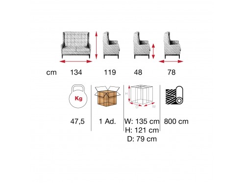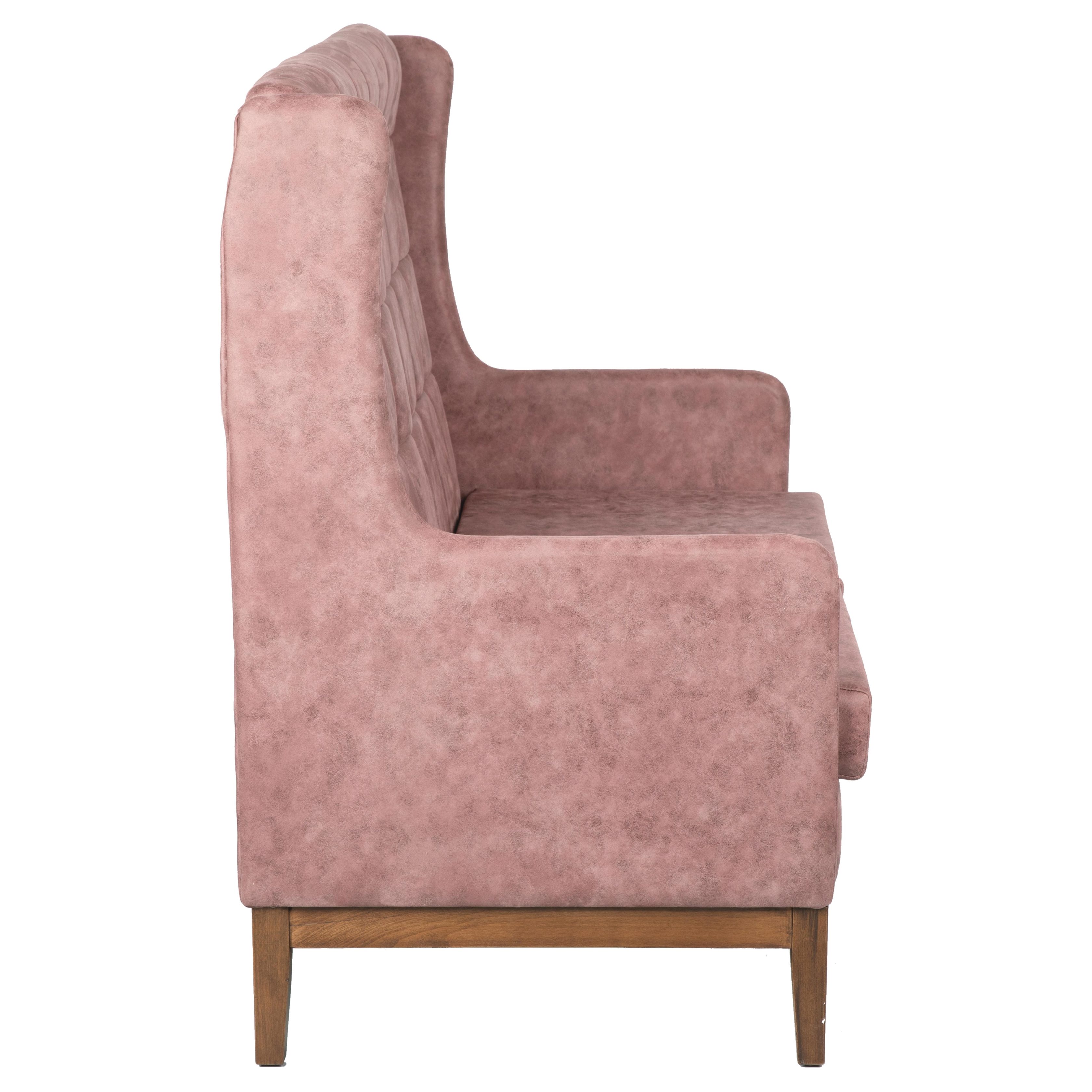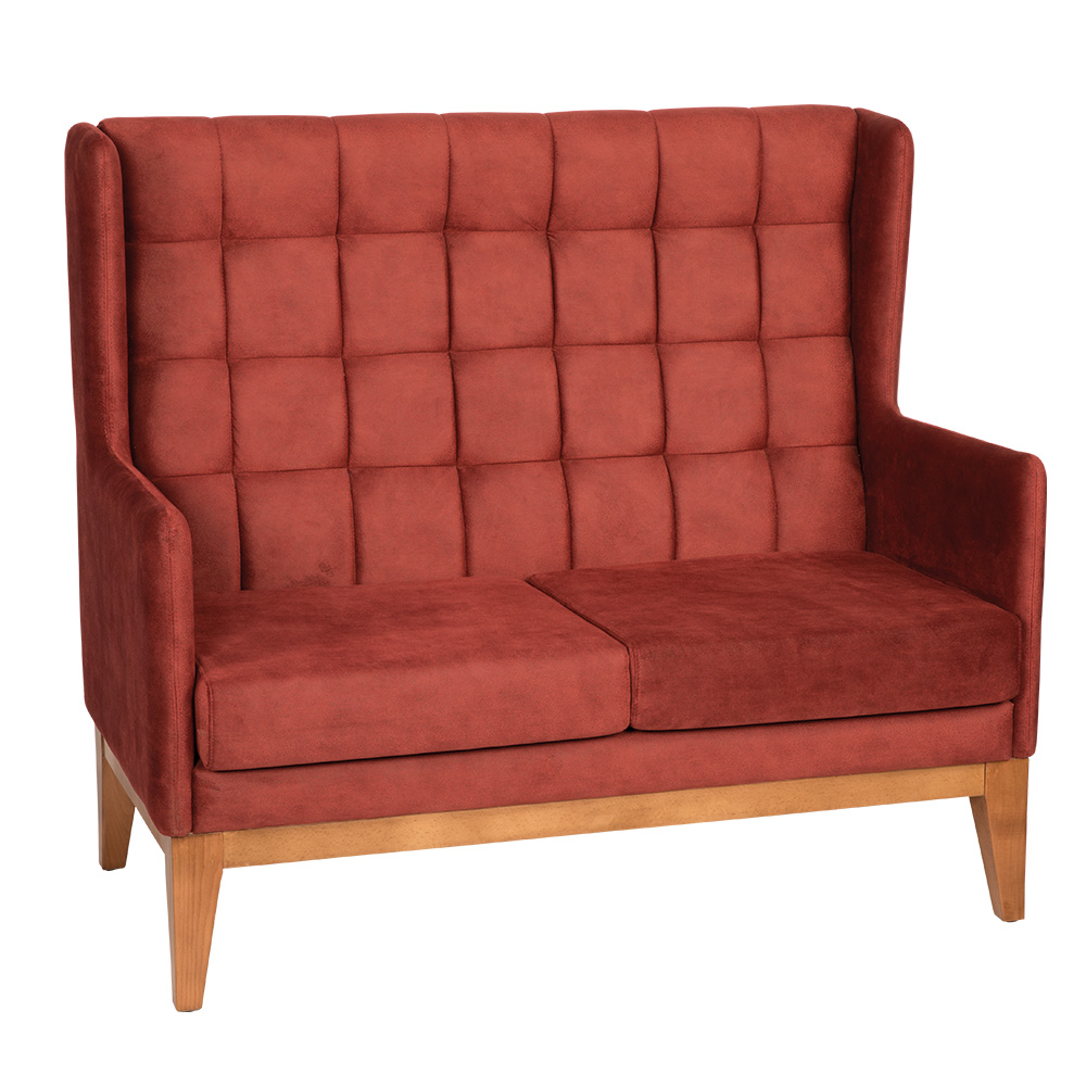 Dieses Modell kombiniert einen hohen Sitzkomfort mit einer eleganten Formensprache. Die hohe Rückenlehne mit dekorativer Karo-Steppung sorgt für Halt und vermittelt gleichzeitig ein klassisch-zeitloses Erscheinungsbild. Die bequemen Sitzpolster laden zum längeren Verweilen ein, während die seitlichen Armlehnen den Komfort zusätzlich erhöhen. Das robuste Holzgestell bildet einen stabilen Rahmen und unterstreicht die Wertigkeit des Sofas. Mit seinem stilvollen Design eignet es sich ideal für Lounges, Hotellobbys oder den privaten Wohnbereich, wo es einen einladenden und zugleich repräsentativen Charakter schafft.