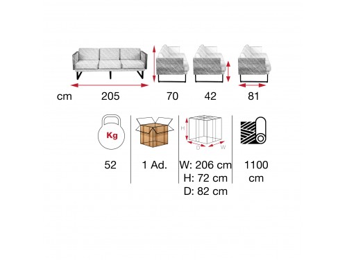 Dieses Dreisitzer-Sofa vereint klares Design mit hoher Funktionalität und bietet großzügigen Sitzkomfort. Der stabile Rahmen aus Holz und Metall sorgt für eine lange Lebensdauer, während die breiten Armlehnen aus Holz dem Möbelstück eine elegante Note verleihen. Die weiche Polsterung mit drei getrennten Sitz- und Rückenkissen schafft eine bequeme Sitzfläche, die sowohl im privaten Wohnbereich als auch in Lounge- oder Wartebereichen zum Einsatz kommen kann. Durch seine schlichte Form fügt es sich harmonisch in unterschiedliche Einrichtungsstile ein und überzeugt mit einer zeitlosen Optik. Ein Sofa, das durch Stabilität, Komfort und stilvolle Zurückhaltung begeistert.