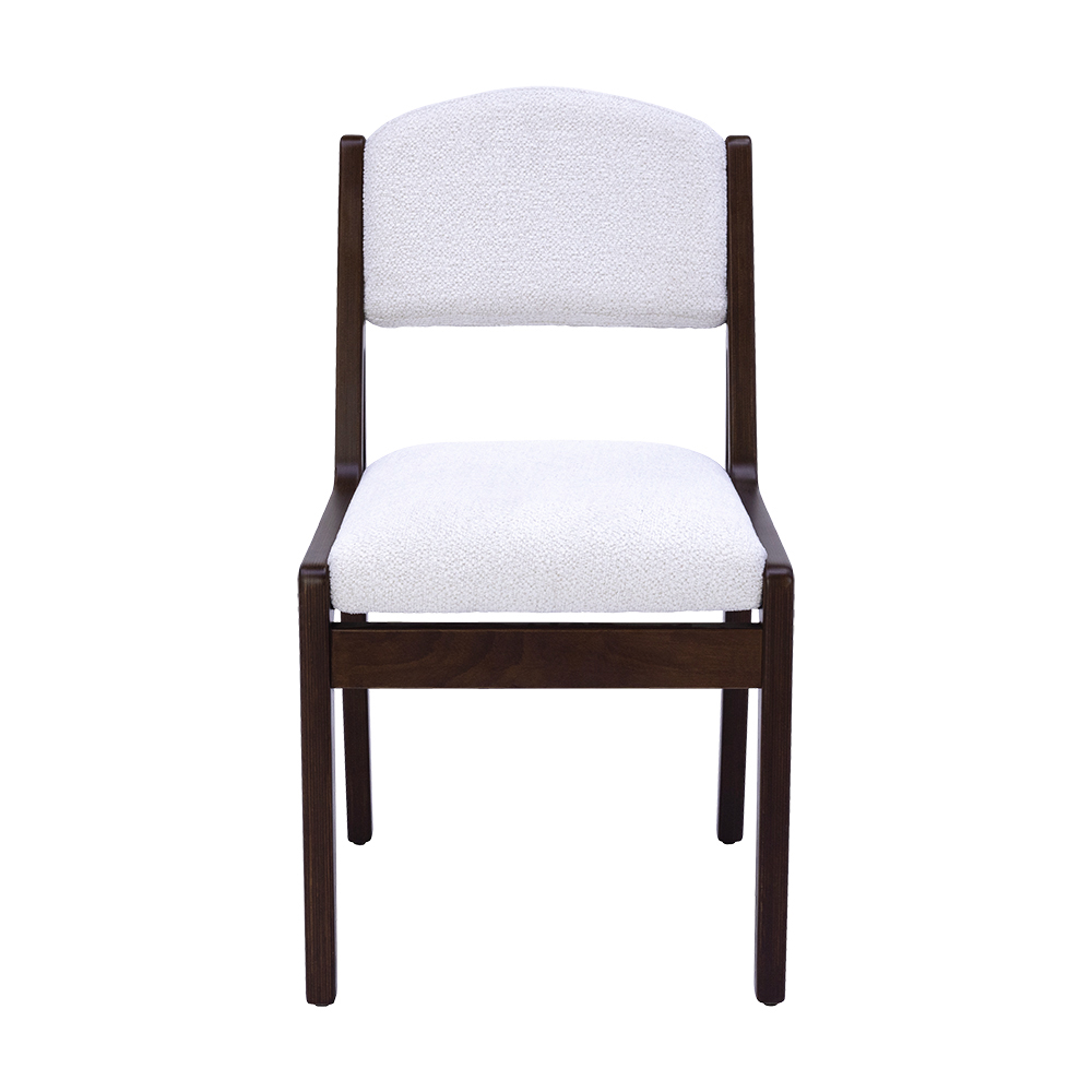 Dieser Stuhl besticht durch seine klare Formensprache und die Kombination aus Massivholzgestell und gepolstertem Sitz- sowie Rückenbereich. Das robuste Holz ist in verschiedenen Ausführungen wie Natur-Eiche, hellem Walnuss oder dunklem Walnuss erhältlich und sorgt für Langlebigkeit und Stabilität. Die gepolsterte Sitzfläche bietet angenehmen Komfort, während die leicht geneigte Rückenlehne für eine ergonomische Sitzhaltung sorgt. Durch sein zeitloses Design eignet sich der Stuhl sowohl für den Einsatz im Esszimmer als auch in der Gastronomie oder in Konferenzräumen.