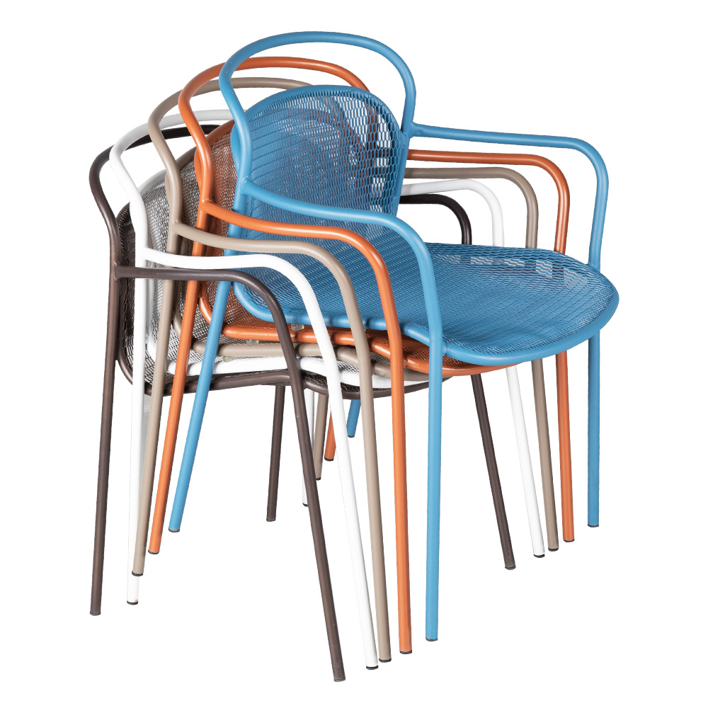 Dieser Stuhl überzeugt mit seiner klaren Linienführung und der leichten, offenen Gestaltung. Das Gestell ist aus robustem Metall gefertigt, wodurch Stabilität und Langlebigkeit gewährleistet sind. Sitz- und Rückenfläche bestehen aus fein gearbeiteten Streben, die nicht nur optisch modern wirken, sondern auch für angenehmen Komfort sorgen. Dank seines geringen Gewichts lässt er sich mühelos stapeln und flexibel einsetzen, sei es im Innen- oder Außenbereich. Besonders in Cafés, Restaurants oder auf Terrassen entfaltet er seinen praktischen und zugleich stilvollen Charakter. Seine vielseitige Verwendbarkeit macht ihn zu einer idealen Lösung für anspruchsvolle Einrichtungskonzepte.