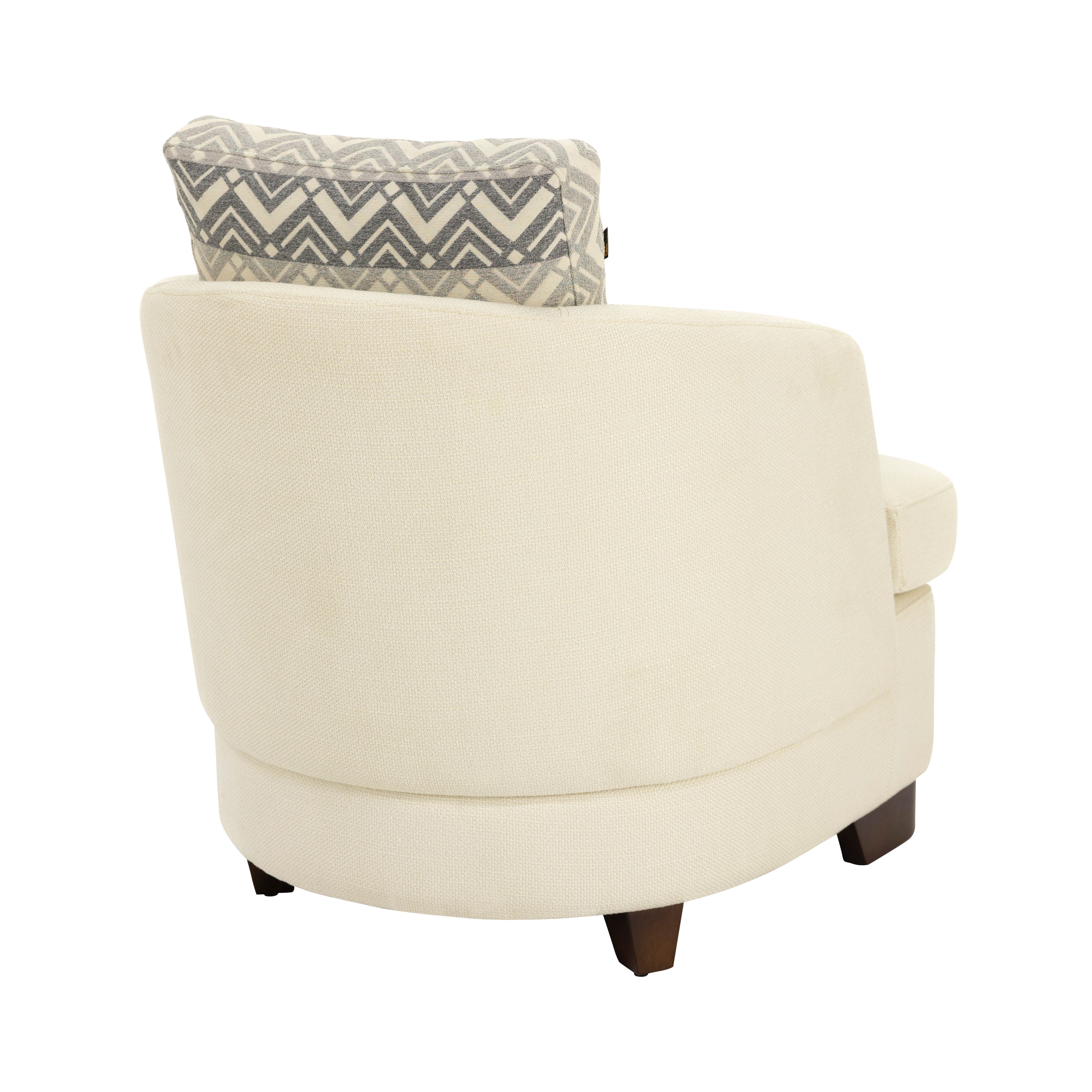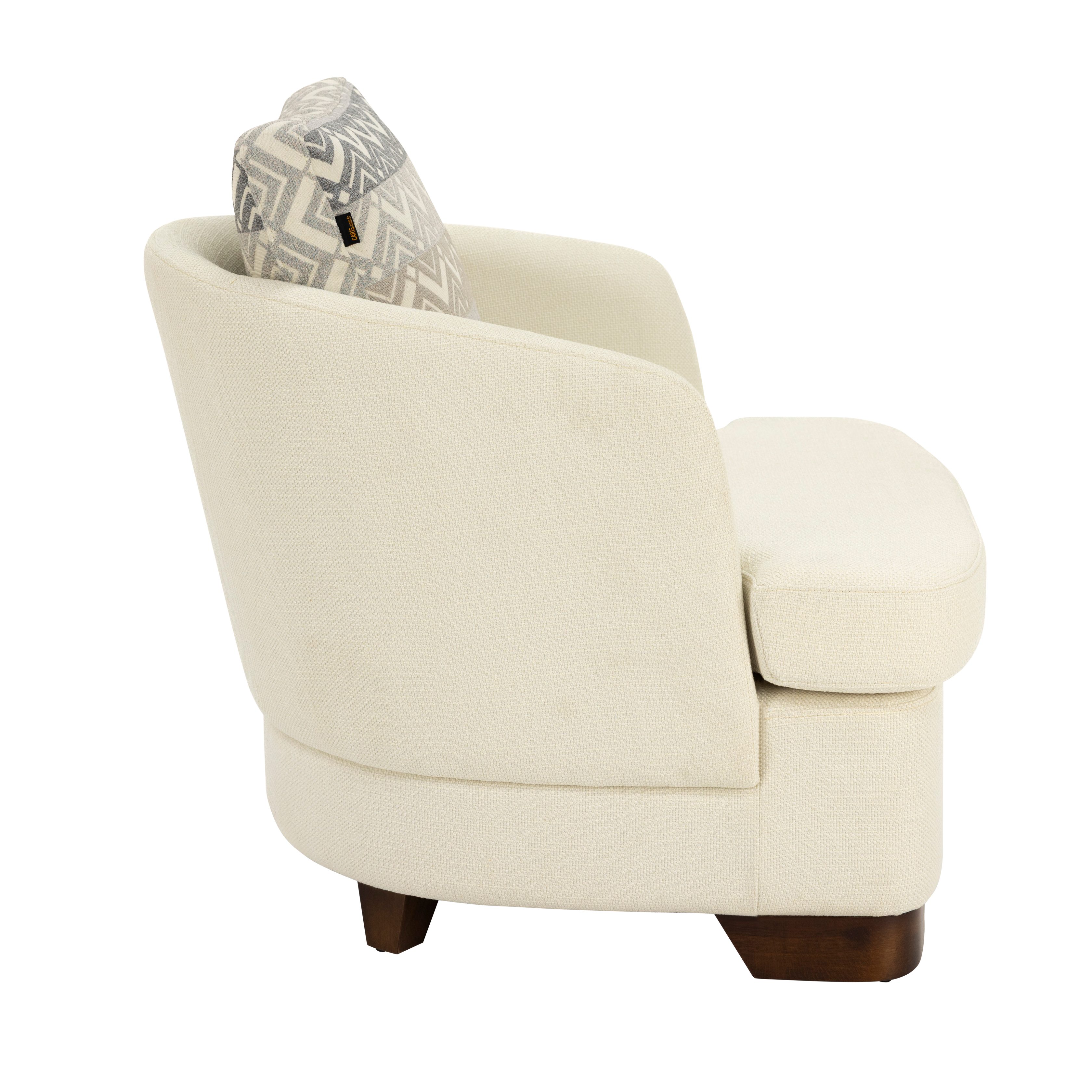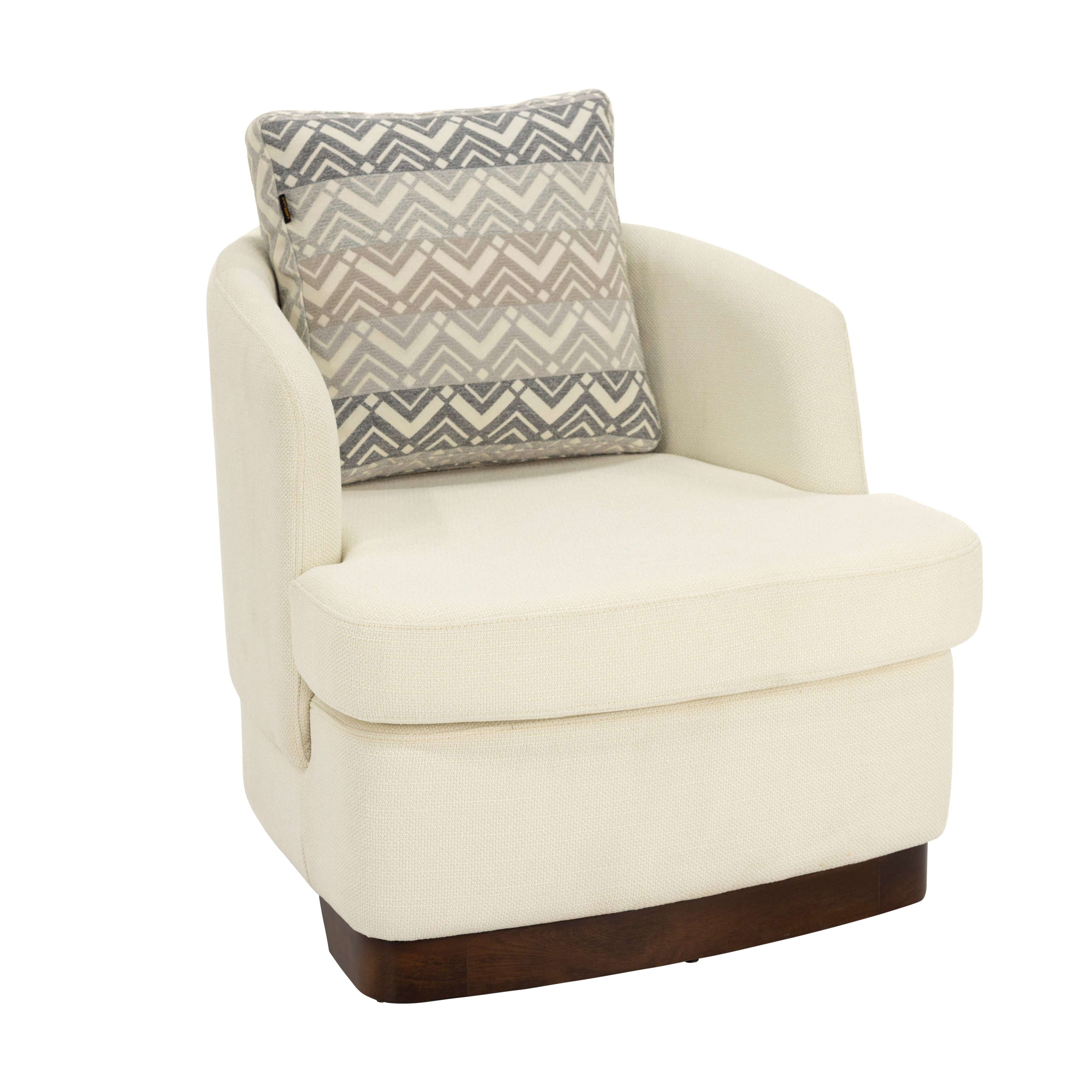 Dieser elegante Sessel vereint modernes Design mit hohem Komfort und wird durch seine runde Form zu einem besonderen Blickfang. Die helle Polsterung sorgt für ein freundliches Ambiente, während das gemusterte Kissen einen stilvollen Akzent setzt. Durch die stabile Holzbasis erhält der Sessel einen soliden Stand und eine warme Ausstrahlung. Die großzügige Sitzfläche lädt zum Verweilen ein und bietet angenehmen Sitzkomfort, sei es im Wohnbereich, im Hotel oder in einer Lounge. Dank seiner harmonischen Gestaltung fügt er sich mühelos in unterschiedliche Einrichtungsstile ein und wirkt dabei stets modern und einladend.