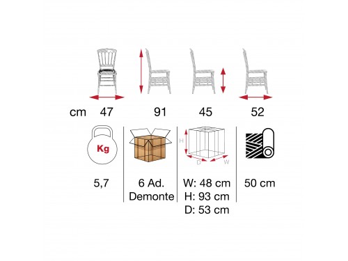 Dieser Stuhl präsentiert sich im klassischen Chiavari-Stil und ist besonders für Veranstaltungen, Hochzeiten oder Bankette geeignet. Gefertigt aus robustem Kunststoff, überzeugt er durch seine Langlebigkeit und sein geringes Gewicht, das ein einfaches Stapeln und Transportieren ermöglicht. Der Stuhl ist zerlegbar, wodurch er platzsparend gelagert und flexibel eingesetzt werden kann. Mit seiner eleganten Optik, die durch die filigrane Rückenlehne unterstrichen wird, verleiht er jedem Raum oder Event ein stilvolles Ambiente. Optional kann er mit einem Sitzkissen ergänzt werden, um den Komfort noch zu erhöhen.
