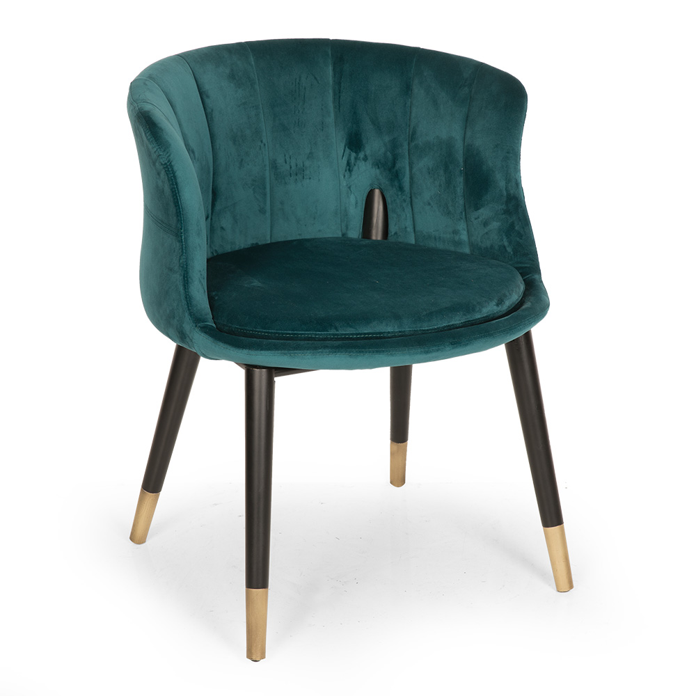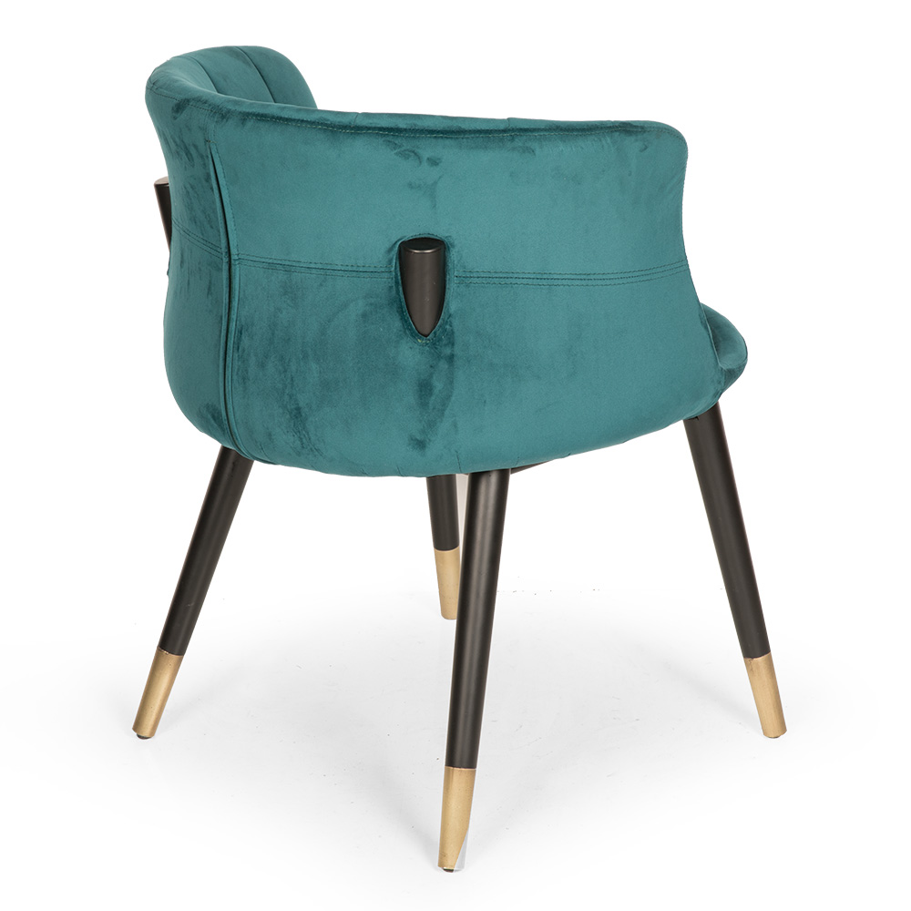 Die Polsterung aus strapazierfähigem Polyurethan ist pflegeleicht und langlebig, wodurch sich der Stuhl besonders für den täglichen Gebrauch eignet. Die stabilen Holzbeine mit kontrastierenden Metallkappen setzen stilvolle Akzente. Erhältlich ist der Stuhl in den Holzfarben Natural-Maşa, Light Walnut (helles Nussbaum) und Walnut (dunkles Nussbaum).