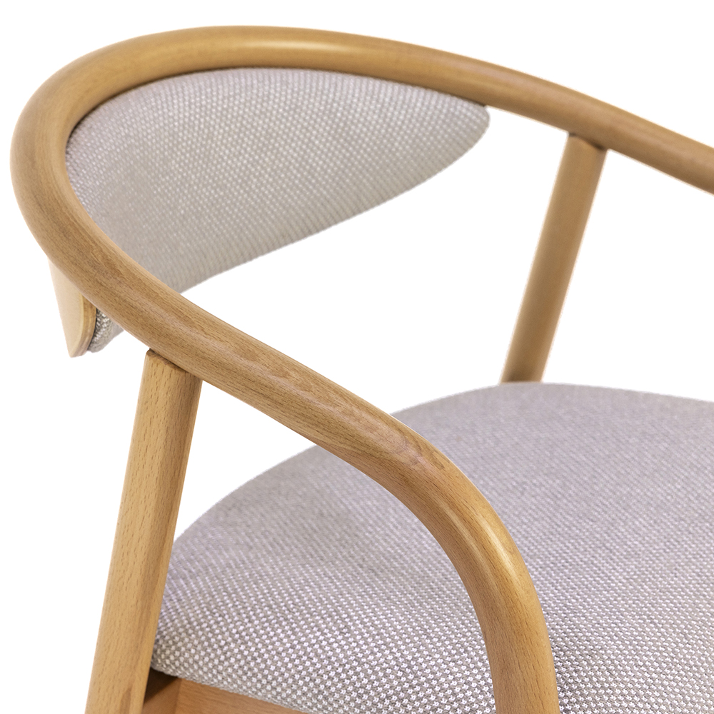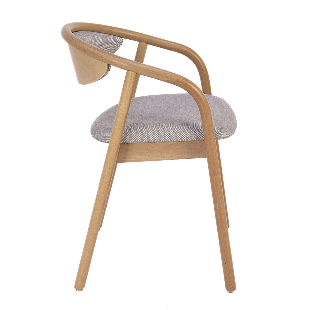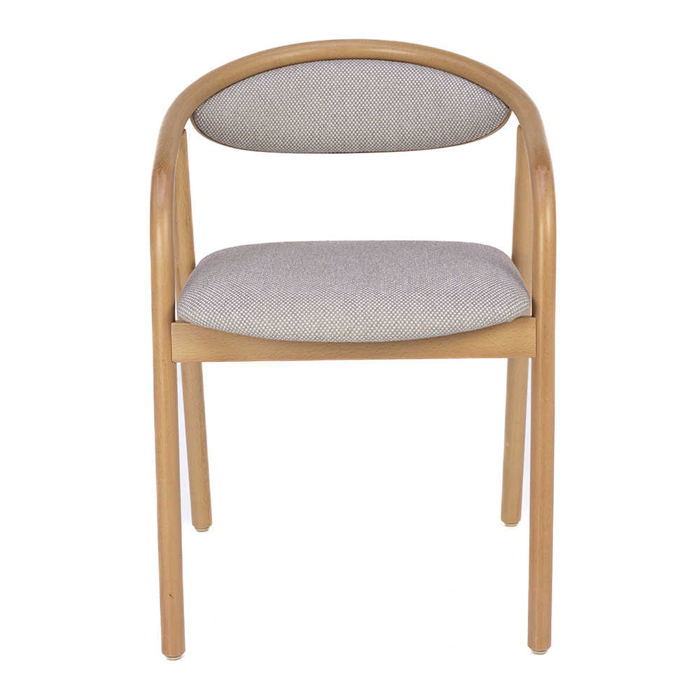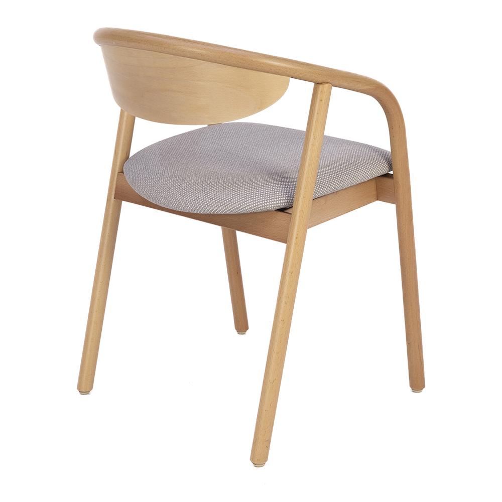 Dieser Stuhl vereint modernes Design mit ergonomischem Sitzkomfort. Die geschwungenen Armlehnen und die runde Rückenlehne sorgen für eine angenehme Sitzhaltung und verleihen dem Möbelstück eine elegante Leichtigkeit. Gefertigt aus hochwertigem Holz und ergänzt durch eine gepolsterte Sitzfläche, passt er sowohl in private Wohnräume als auch in stilvolle Gastronomiebereiche. Durch die Auswahl verschiedener Holzfarben wie Natur-Eiche, Hell-Nussbaum oder Dunkel-Nussbaum lässt er sich flexibel an unterschiedliche Raumkonzepte anpassen. Seine stabile Konstruktion garantiert Langlebigkeit, während die feine Verarbeitung für eine edle Ausstrahlung sorgt. Ein vielseitiger Stuhl, der Ästhetik und Funktionalität perfekt verbindet.