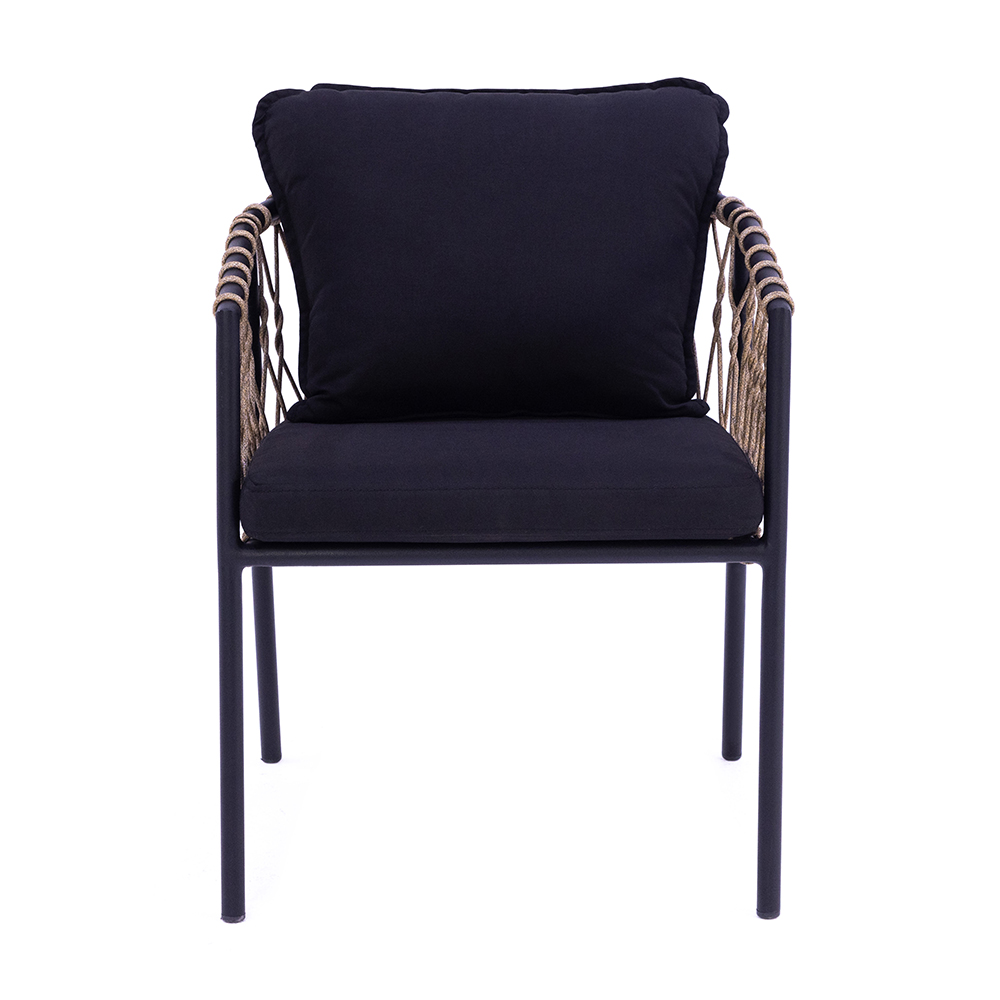 Dieser Stuhl überzeugt mit einer modernen Kombination aus klarer Linienführung und handwerklich geflochtenen Seitenelementen. Das stabile Aluminiumgestell verleiht ihm eine hohe Belastbarkeit, während die weichen Polster für erstklassigen Sitzkomfort sorgen. Durch die offene Flechtoptik wirkt er zugleich luftig und elegant, was ihn zu einem stilvollen Blickfang in jedem Ambiente macht. Dank der hochwertigen Materialien ist er wetterbeständig und ideal für den Einsatz im Innen- wie im Außenbereich geeignet. Mit seiner Mischung aus Komfort und Design fügt er sich harmonisch in moderne Wohn- und Outdoor-Konzepte ein und lädt zu entspannten Stunden ein.