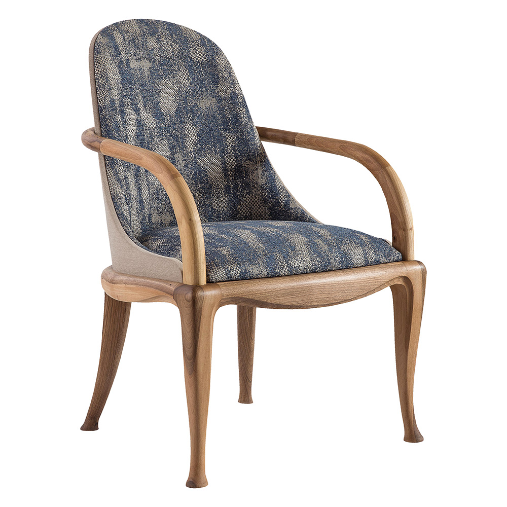 Dieser Stuhl vereint klassische Eleganz mit traditioneller Handwerkskunst und bietet durch seine geschwungenen Linien eine besonders harmonische Ausstrahlung. Das massive Holzgestell ist stabil und langlebig, während die gepolsterte Sitzfläche und Rückenlehne hohen Komfort garantieren. Durch die hochwertigen Stoff- und Ledervarianten kann er individuell an den gewünschten Stil angepasst werden. Mit seinen fein gearbeiteten Armlehnen und den elegant geschwungenen Beinen eignet er sich hervorragend für repräsentative Räume, Hotels oder gehobene Restaurants. Dieses Modell ist ein Ausdruck von Raffinesse und zeitloser Klasse, das jedem Interieur eine exklusive Note verleiht.