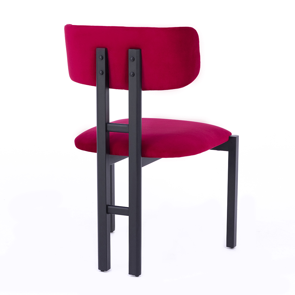 Dieser Stuhl besticht durch seine klare Formensprache und die markante Kombination aus stabilem Metallgestell und gepolsterter Sitz- und Rückenfläche. Der kräftige Farbton der Polsterung setzt einen modernen Akzent und verleiht dem Stuhl einen ausdrucksstarken Charakter. Dank der robusten Konstruktion ist er langlebig und bestens für den intensiven Einsatz in Gastronomie, Hotellerie oder modernen Wohnbereichen geeignet. Die bequeme Polsterung sorgt für angenehmen Sitzkomfort, während das minimalistische Design vielseitige Einsatzmöglichkeiten eröffnet. Dieses Modell ist die ideale Wahl für alle, die Funktionalität mit einem auffälligen Design verbinden möchten.