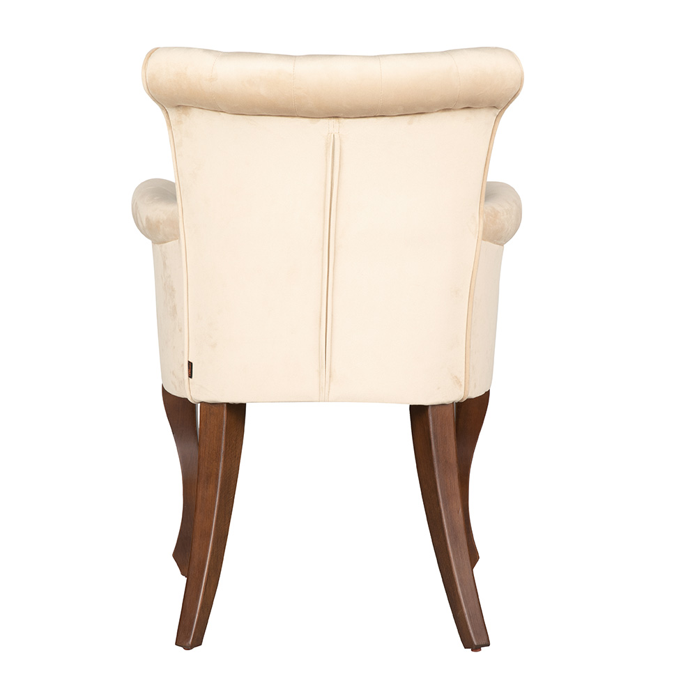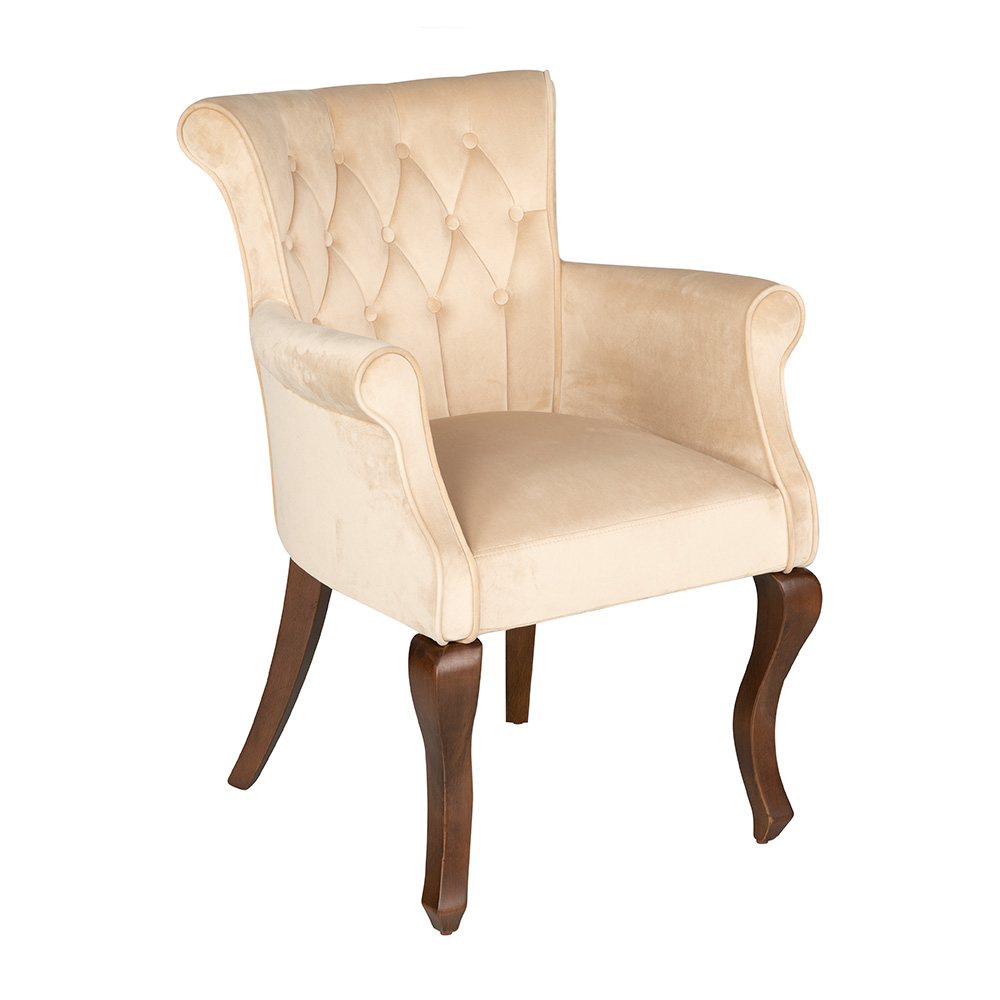 Dieser Sessel vereint klassische Eleganz mit modernem Wohnkomfort. Die hohe Rückenlehne mit Knopfheftung und die geschwungenen Armlehnen bieten angenehme Unterstützung und ein edles Erscheinungsbild. Die weiche Polsterung sorgt für bequemes Sitzen, während die geschwungenen Holzbeine dem Design eine raffinierte Note verleihen. Ob im Wohnzimmer, im Empfangsbereich oder in stilvollen Gastronomie-Settings – er strahlt zeitlose Klasse und Vielseitigkeit aus.