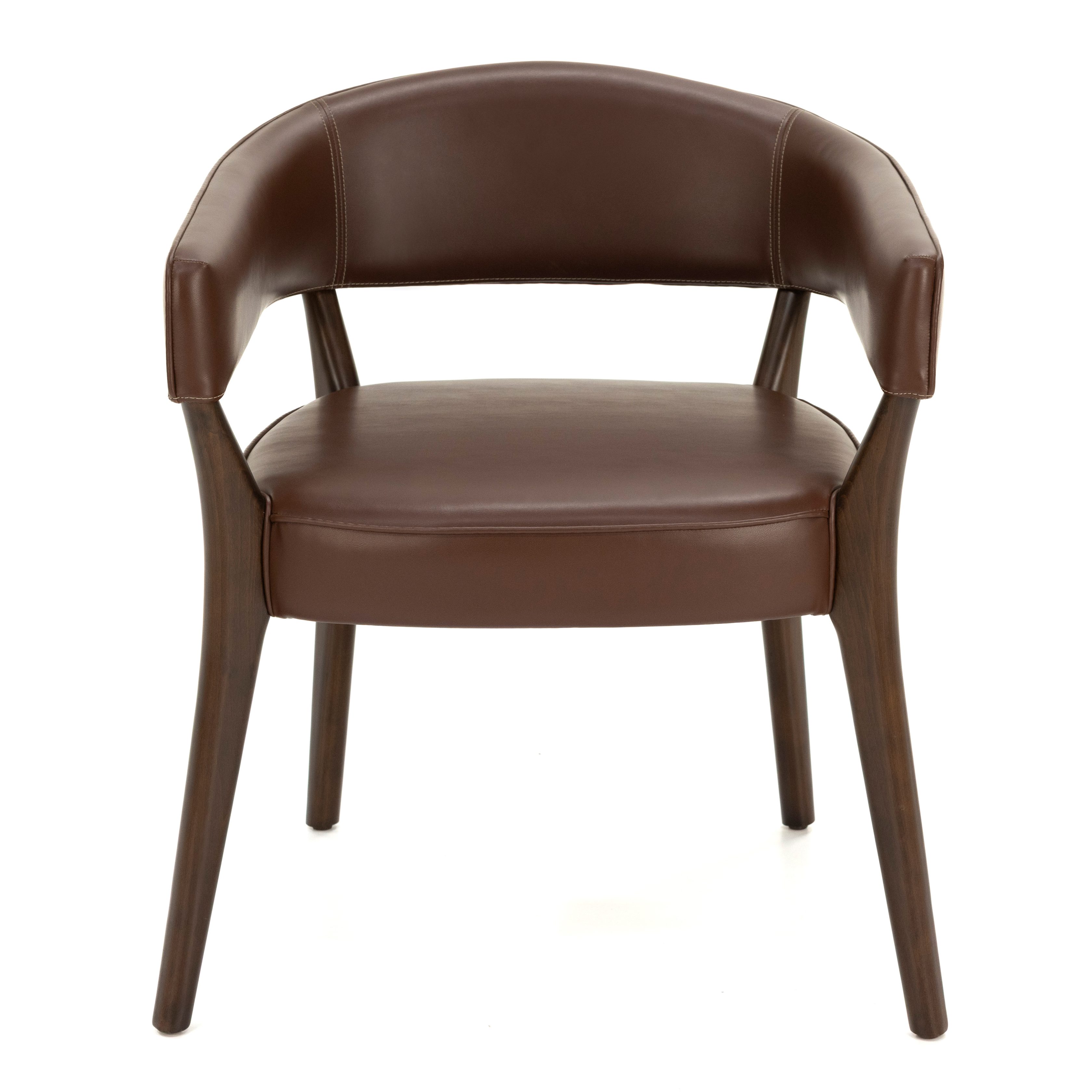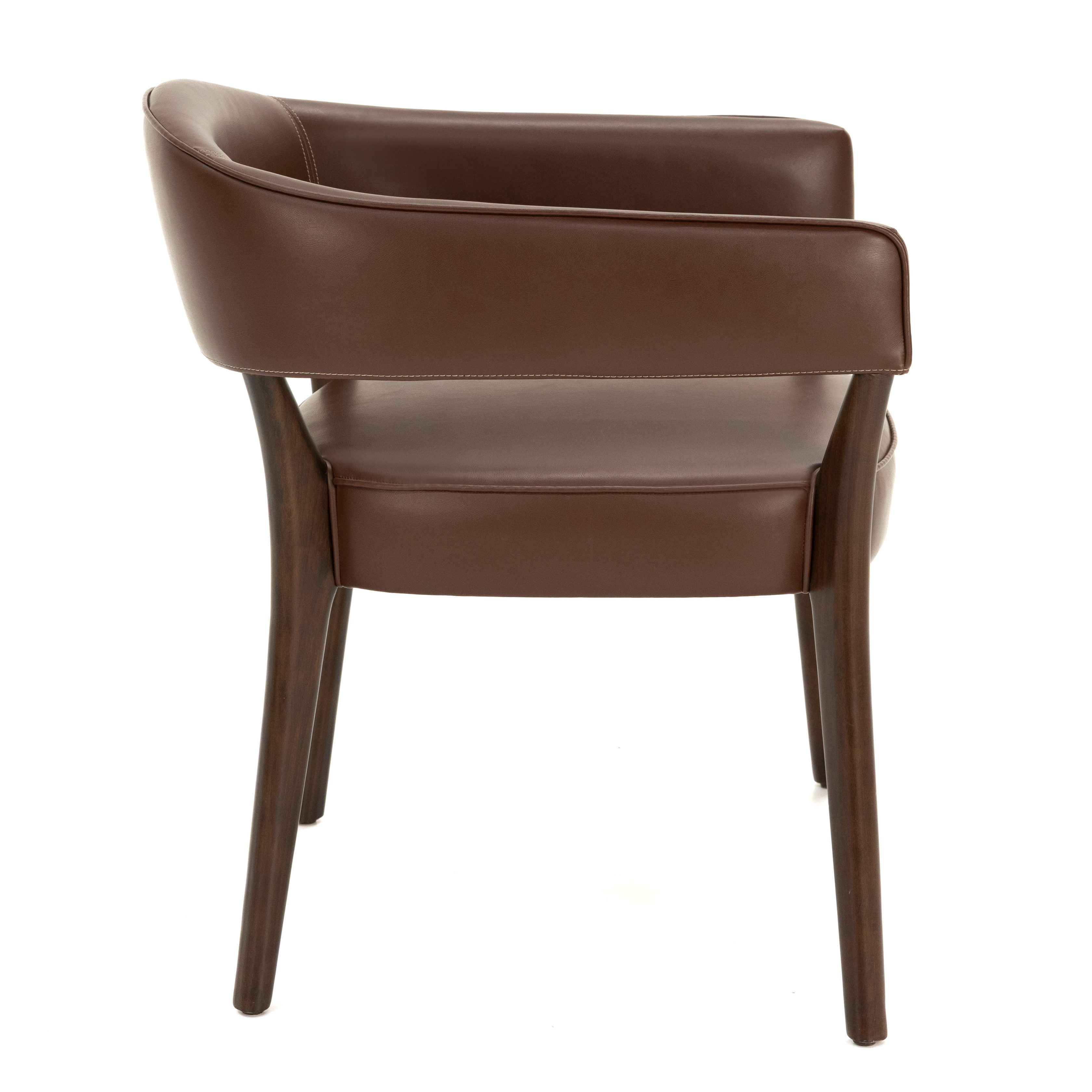 Dieser stilvolle Stuhl überzeugt durch sein modernes, zeitloses Design und seine robuste Verarbeitung. Die geschwungene Rückenlehne und die integrierten Armlehnen sorgen für hohen Sitzkomfort und laden zum entspannten Verweilen ein. Dank der stabilen Holzbeine erhält der Stuhl nicht nur einen sicheren Stand, sondern auch eine warme, natürliche Ausstrahlung. Die hochwertige Polsterung in Lederoptik verleiht ihm zudem Eleganz und macht ihn vielseitig einsetzbar – ob im Essbereich, in Restaurants oder in Lounge-Bereichen. Ein Möbelstück, das Komfort und Design harmonisch miteinander verbindet.