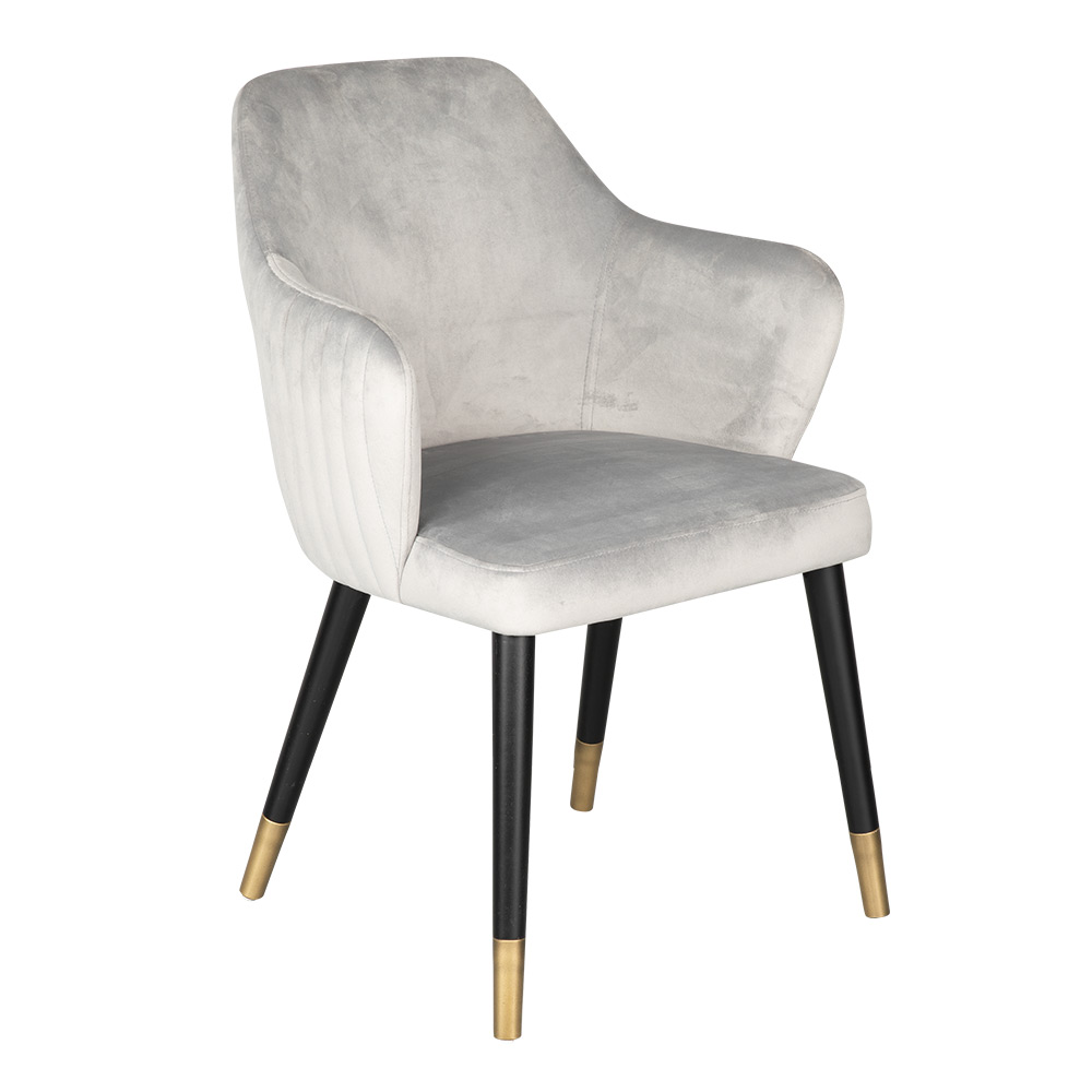 Dieser Stuhl überzeugt durch sein markantes Design und die klare Linienführung der vertikalen Nähte. Die großzügig geformte Sitzschale mit integrierten Armlehnen sorgt für hohen Sitzkomfort, während die stabilen Holzbeine mit goldfarbenen Akzenten an den Enden einen eleganten Kontrast setzen. Die Kombination aus moderner Form und klassischem Polsterstil macht ihn vielseitig einsetzbar – sei es in Cafés, Restaurants oder stilvollen Wohnbereichen. Ein ausdrucksstarker Stuhl, der sowohl Komfort als auch visuelle Präsenz vereint.