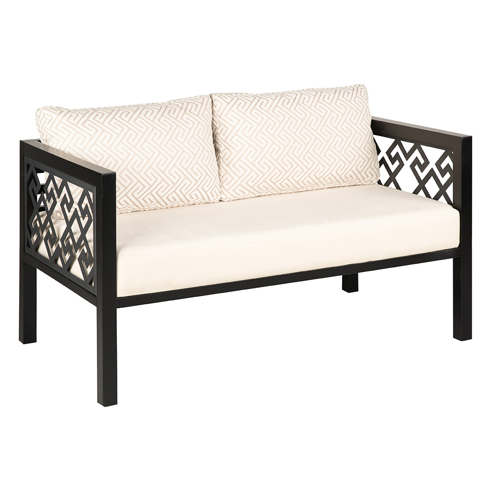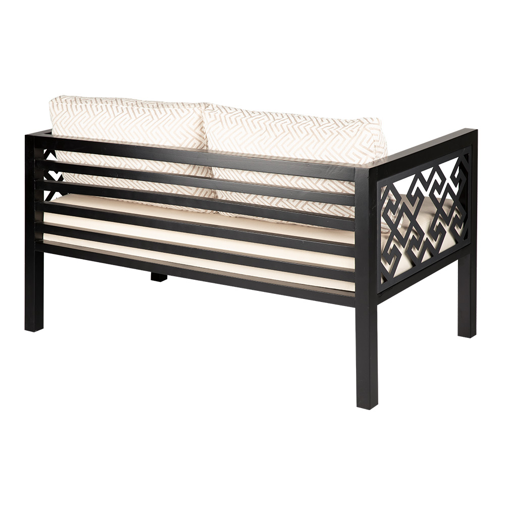 Dieses stilvolle Zweisitzer-Sofa vereint modernes Design mit handwerklicher Eleganz. Das stabile Holzgestell wird durch seitliche Zierpaneele mit geometrischem Muster ergänzt, die dem Möbelstück eine besondere Raffinesse verleihen. Die großzügig gepolsterten Sitz- und Rückenkissen sorgen für hohen Komfort und laden zu entspannten Momenten ein. Mit der Auswahl an Holzfarben wie Natur-Eiche, heller Nussbaum oder dunkler Nussbaum lässt sich das Sofa perfekt an verschiedene Einrichtungsstile anpassen. Es eignet sich hervorragend für Wohnräume, Lounges oder Wintergärten und bringt sowohl Gemütlichkeit als auch einen Hauch von Exklusivität in den Raum. Durch seine hochwertige Verarbeitung bleibt es über viele Jahre hinweg ein verlässliches und stilvolles Möbelstück.
