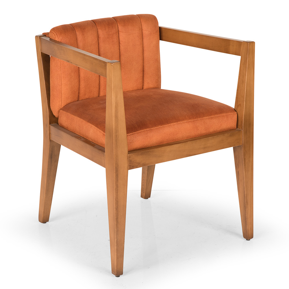 Ein eleganter Holzstuhl mit Armlehnen, der Komfort und Stabilität vereint.
