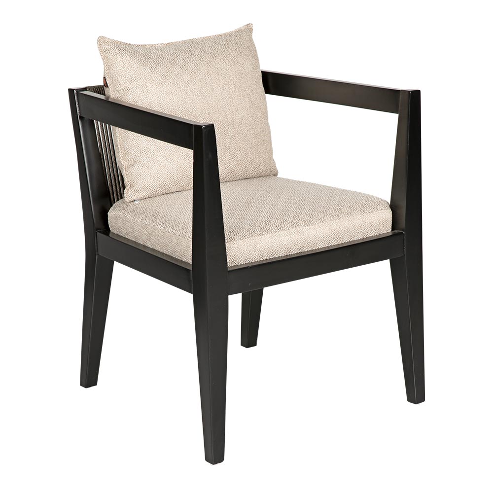 Dieser Stuhl verbindet ein klares, gradliniges Holzgestell mit einer aufwendig gearbeiteten Rückenlehne aus geflochtenem Seil. Die großzügig gepolsterten Sitz- und Rückenkissen sorgen für hohen Komfort, während die stabile Holzkonstruktion eine lange Lebensdauer garantiert. Dank der Auswahl an Holzfarben von Natur bis zu dunklem Nussbaum fügt er sich flexibel in verschiedene Raumkonzepte ein. Mit einem Gewicht von unter neun Kilogramm ist er zudem leicht zu handhaben und vielseitig einsetzbar – ob im Esszimmer, im Lounge-Bereich oder in stilvollen Gastronomie-Umgebungen. Der Preis von einhundertsechzig Euro macht ihn zu einer attraktiven Wahl für alle, die Wert auf Design und Bequemlichkeit legen.