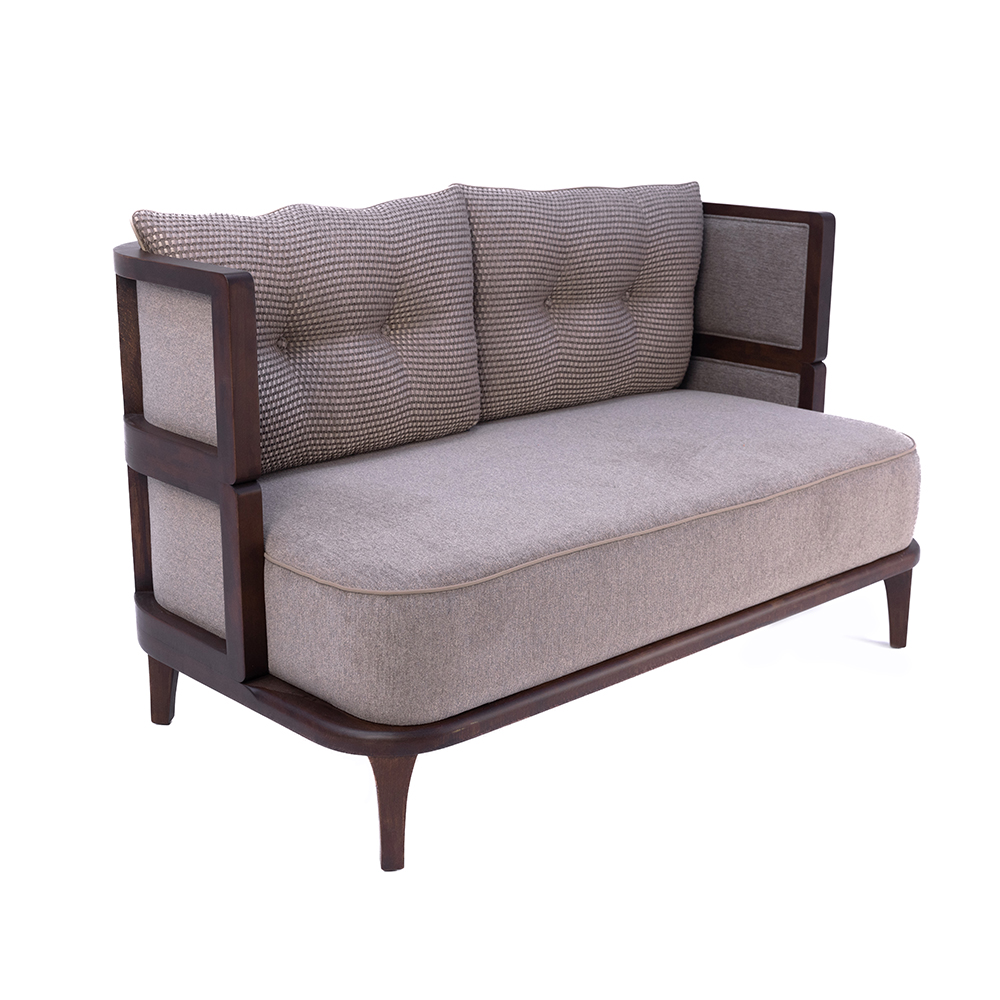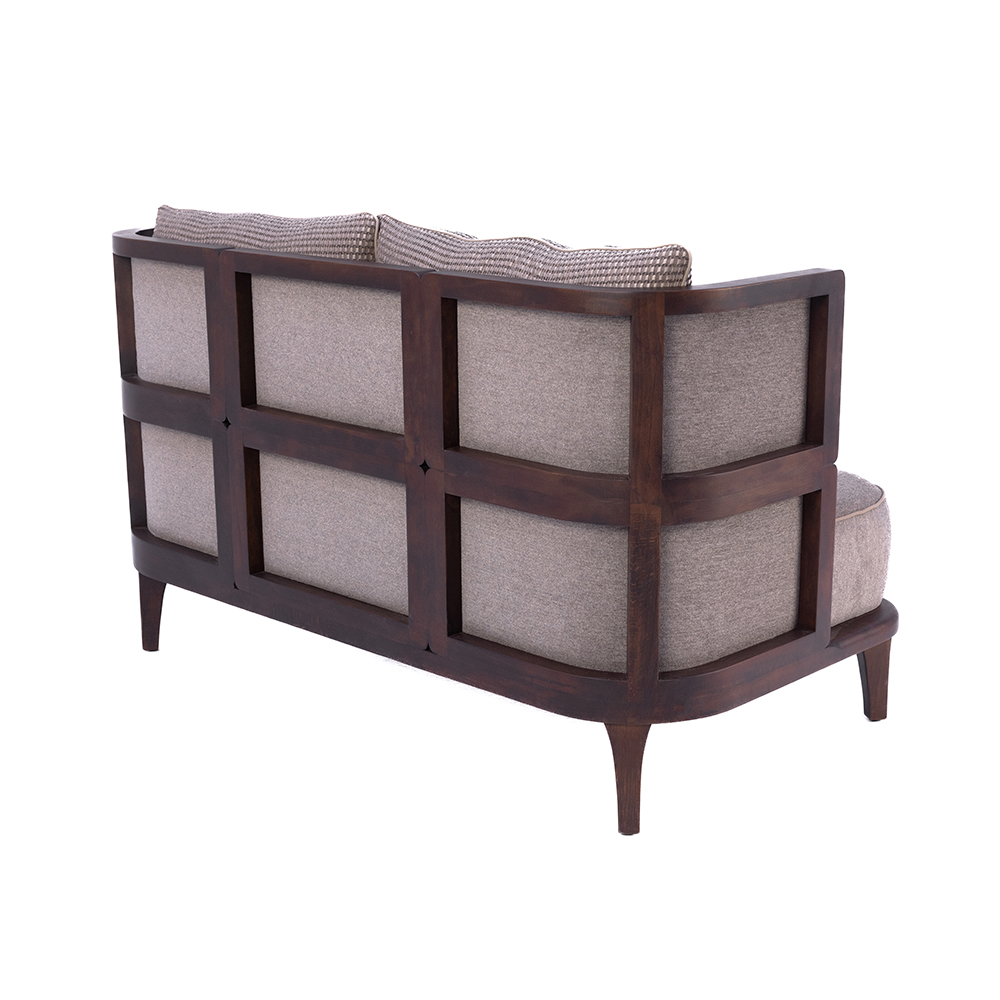 Dieses elegante Zweisitzer-Sofa kombiniert klassisches Design mit modernen Details und schafft so eine harmonische Atmosphäre. Das dunkle Massivholzgestell mit feinen Geflecht-Elementen verleiht dem Sofa eine natürliche Leichtigkeit, während die großzügige Polsterung für hohen Sitzkomfort sorgt. Die weichen Rückenkissen bieten zusätzlichen Halt und machen das Sofa zu einem gemütlichen Platz zum Entspannen. Dank seiner stilvollen Optik fügt es sich mühelos in verschiedene Wohnkonzepte ein – ob modern, klassisch oder zeitlos elegant. Ein vielseitiges Möbelstück, das sowohl im Wohnzimmer als auch in Loungebereichen eine einladende Wirkung entfaltet.