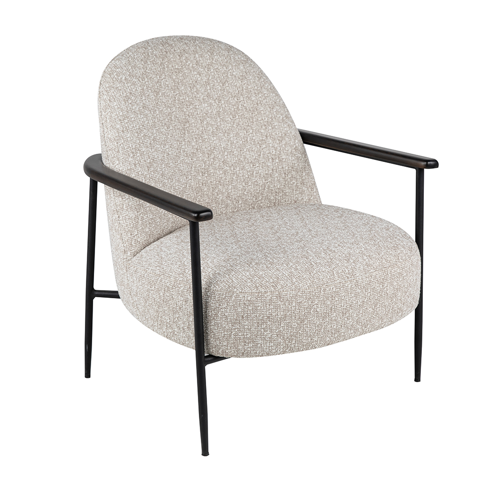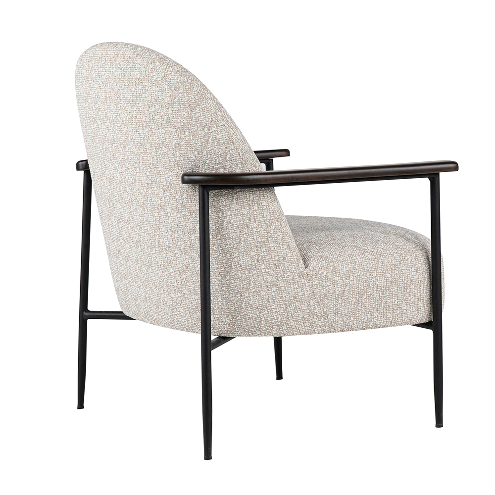 Dieser elegante Stuhl vereint schlichte Rundungen mit einem filigranen Gestell und sorgt so für ein harmonisches Gesamtbild. Die großzügige Polsterung der Sitzfläche und Rückenlehne bietet hohen Komfort, während die schmalen Armlehnen mit Holzauflagen eine warme Note setzen. Durch die klaren Linien wirkt er zugleich modern und zeitlos, was ihn vielseitig einsetzbar macht – ob im Wohnbereich, in Hotellobbys oder in stilvollen Empfangszonen. Dank der hochwertigen Materialien ist er nicht nur optisch ansprechend, sondern auch langlebig und pflegeleicht. Seine Ausführung fügt sich mühelos in verschiedene Einrichtungsstile ein und setzt dabei ein klares Statement.