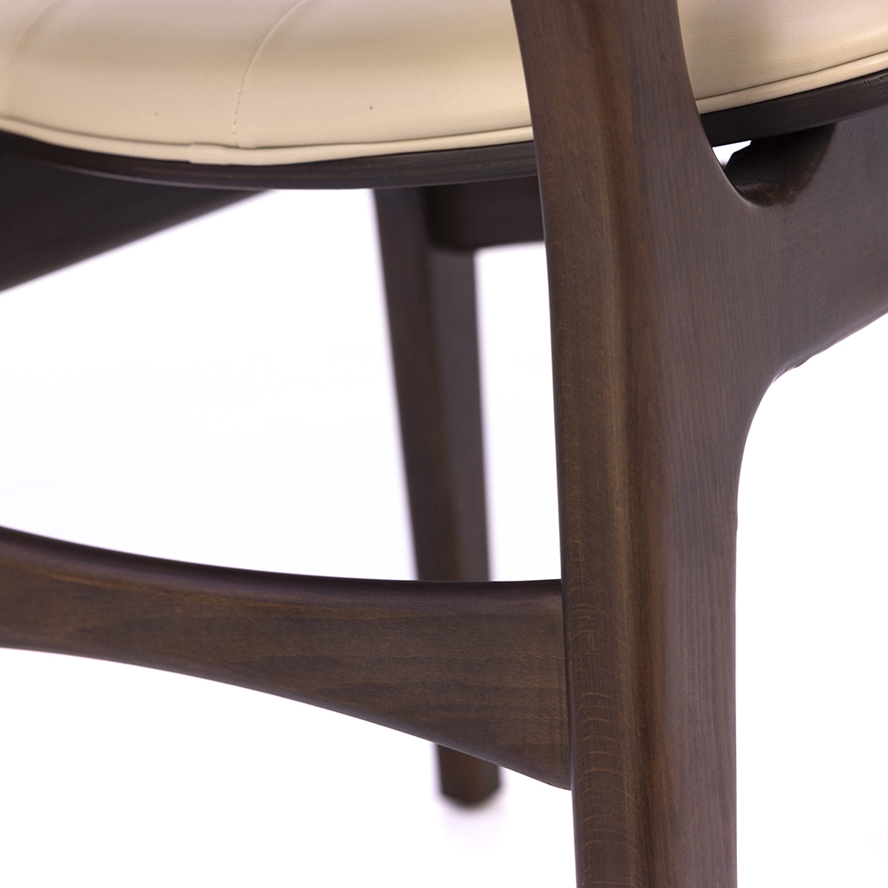 Dieser Stuhl vereint eine klare Formensprache mit einem hohen Maß an Sitzkomfort. Die weich gepolsterte Sitz- und Rückenfläche ist mit einer eleganten Knopfsteppung versehen, die dem Design eine klassische und zugleich moderne Note verleiht. Das robuste Holzgestell sorgt für Stabilität und eine lange Lebensdauer, während die kompakte Bauweise den Stuhl vielseitig einsetzbar macht. Er passt ideal in Restaurants, Cafés oder private Essbereiche und überzeugt durch seine Kombination aus Komfort und Stil. Die Holzoberflächen können in den Farben Natur-Eiche, Hell-Nussbaum oder Dunkel-Nussbaum gewählt werden, wodurch sich der Stuhl perfekt an verschiedene Einrichtungskonzepte anpassen lässt. Ein funktionaler und stilvoller Begleiter, der sowohl in traditionellem als auch in modernem Ambiente seine Wirkung entfaltet.